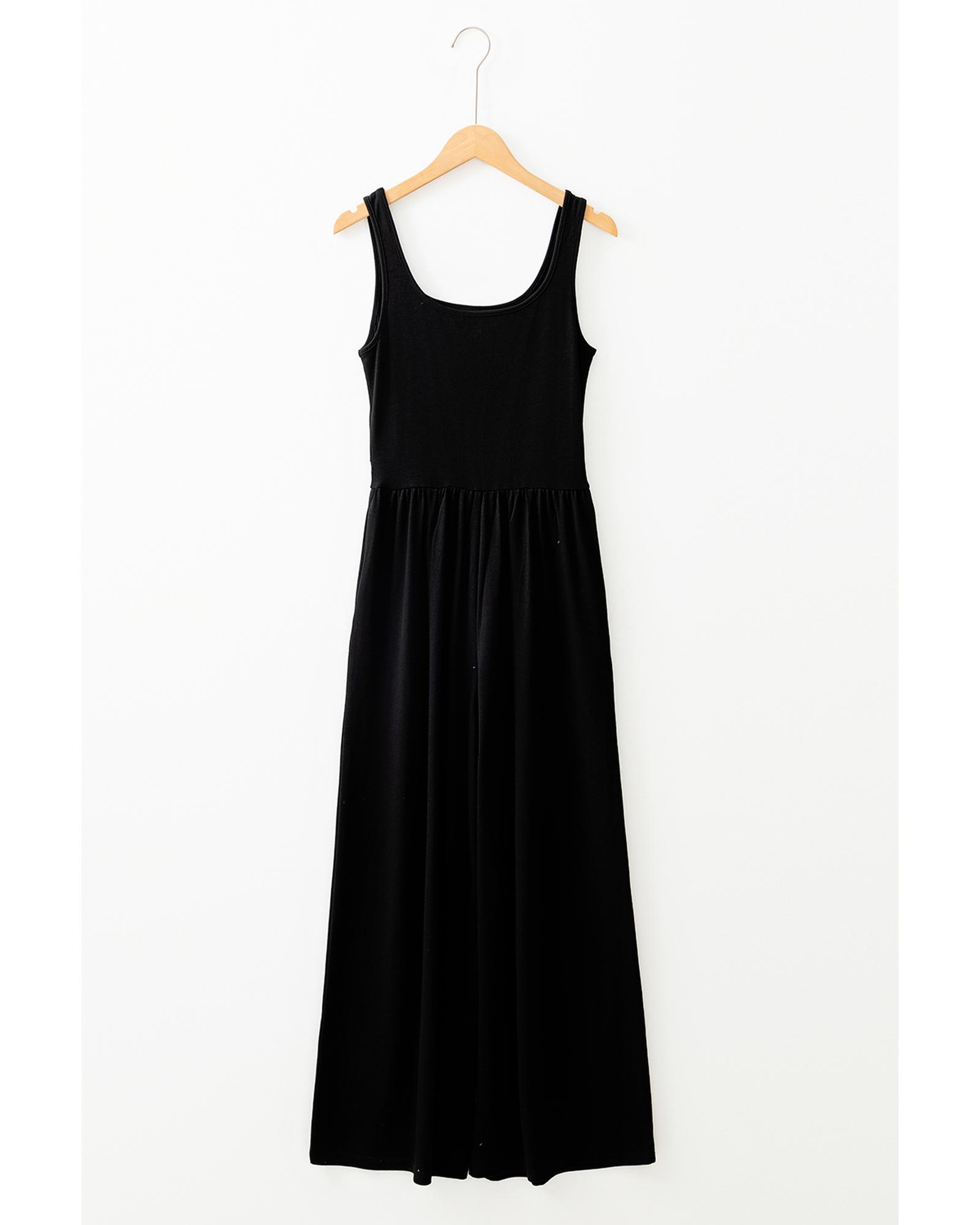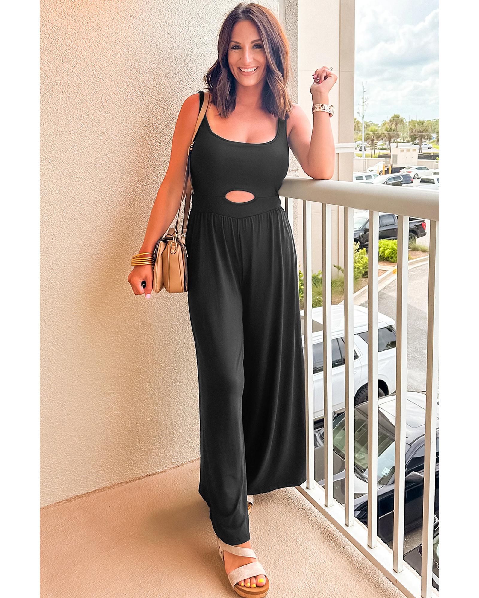 Black Peekaboo Wide Leg Square Neck Sleeveless Jumpsuit – XL
