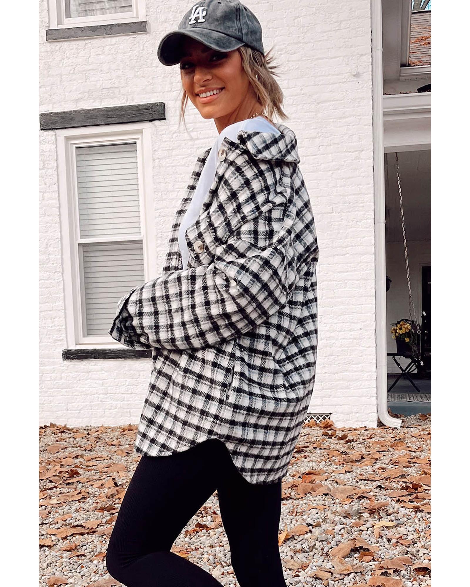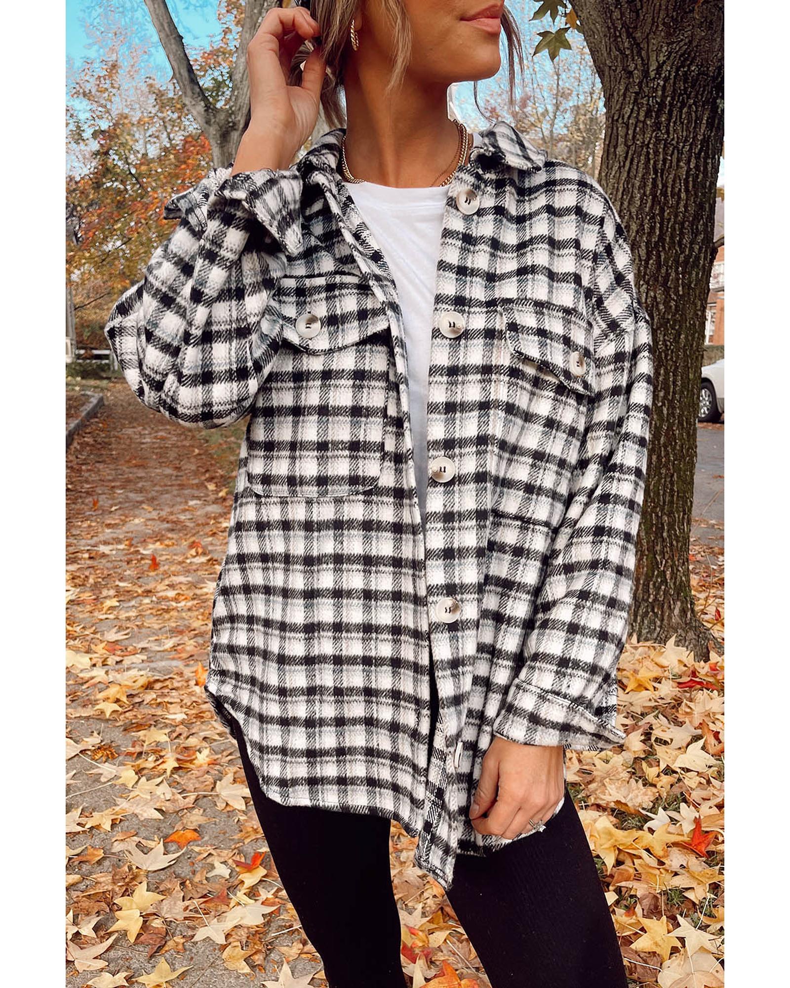 Black Plaid Print Chest Pockets Buttoned Tunic Shacket - M Original price was: $77.99.Current price is: $42.99.