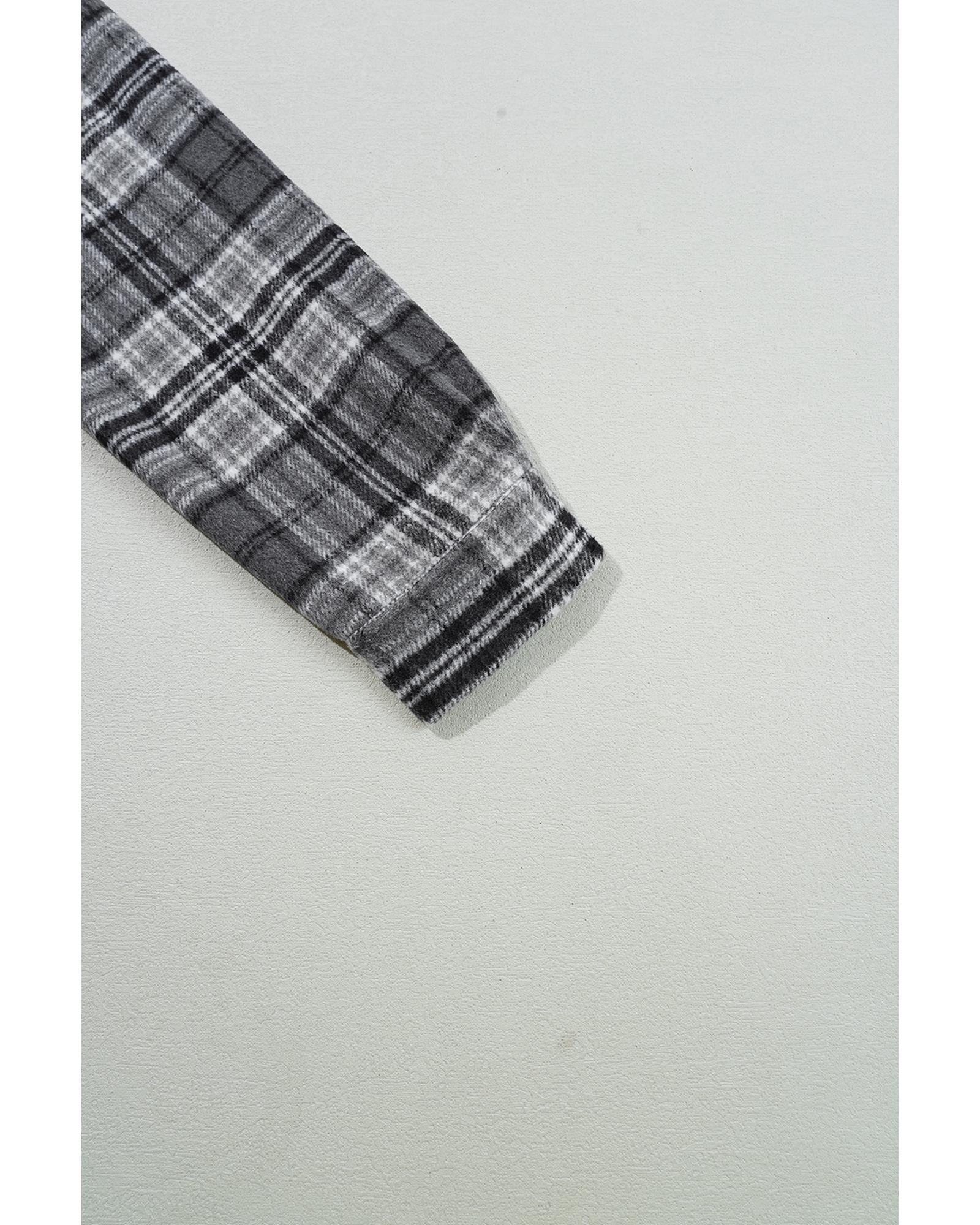Black Plaid Print Flap Pockets Contrast Hooded Loose Shacket – M