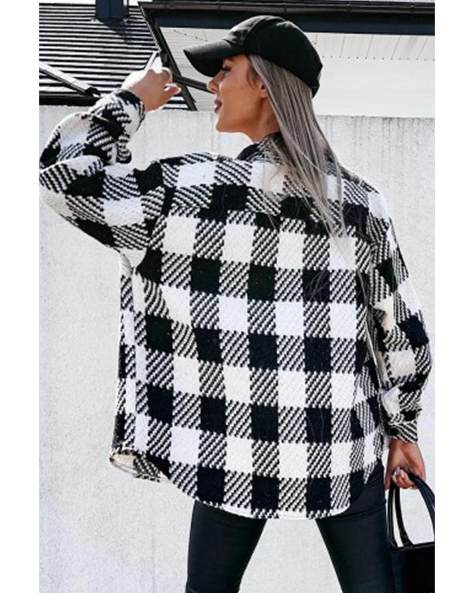 Black Plaid Textured Flap Pocket Shacket - L Original price was: $74.99.Current price is: $40.99.