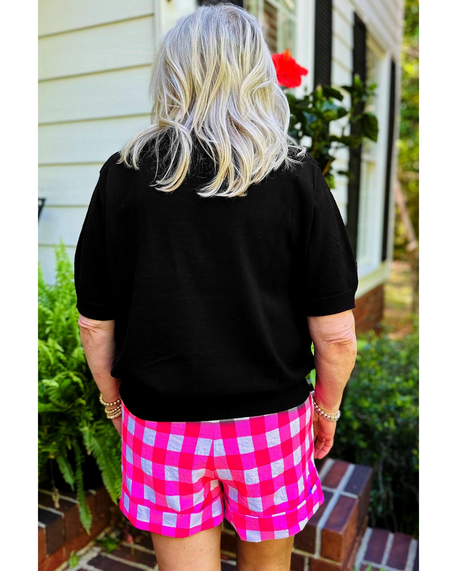 Black Plus Size Cheers Glitter Tinsel Short Sleeve Sweater – 1X