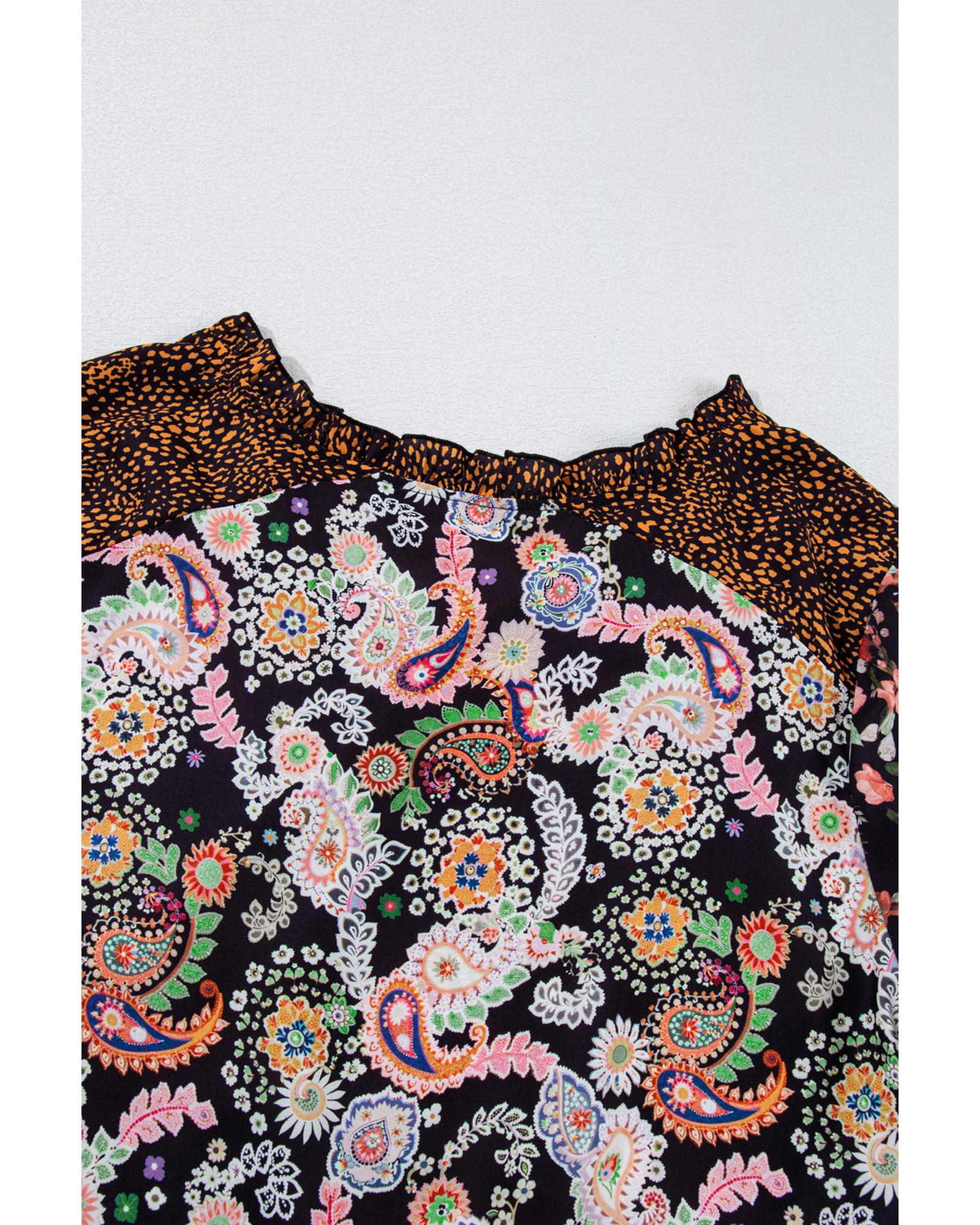 - Black plus size blouse with paisley floral print