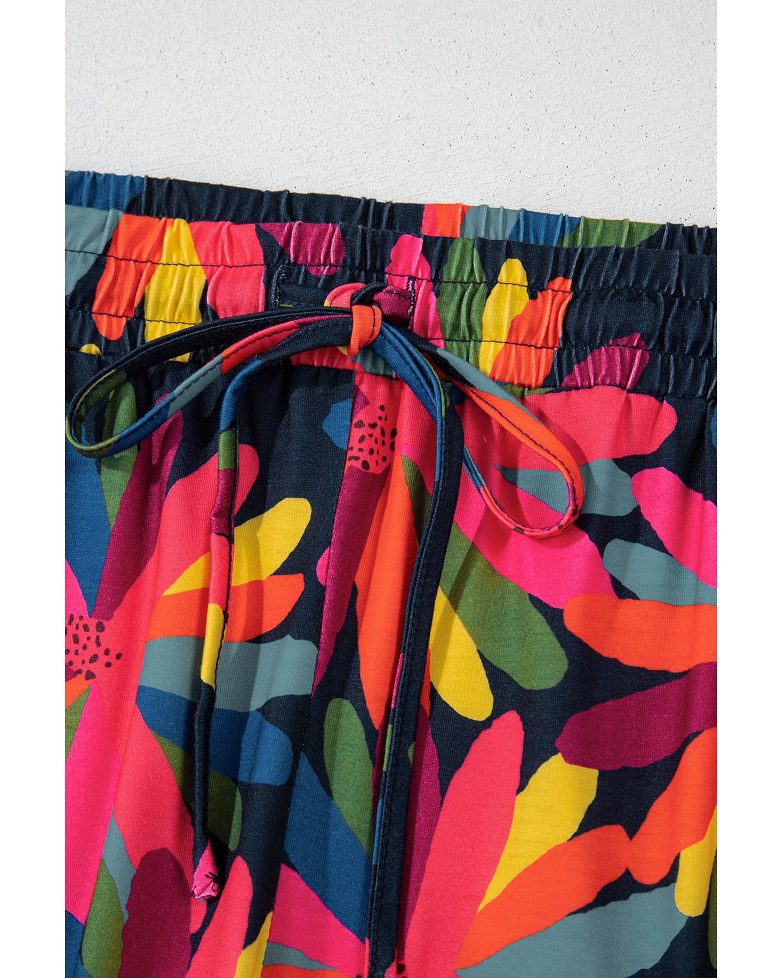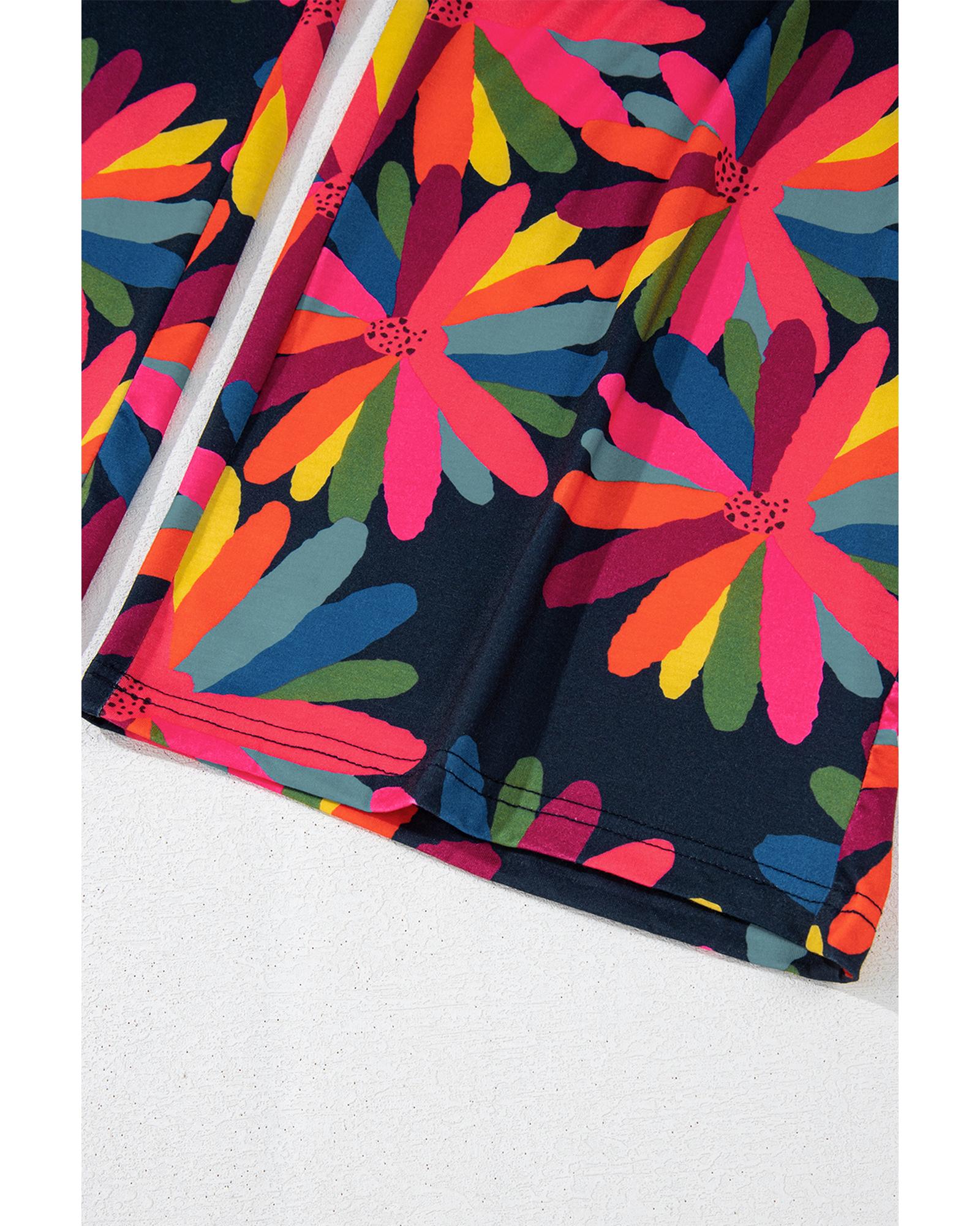 Orange Floral Print Split V Neck Bubble Sleeve Plus Size Midi Dress - 1X
