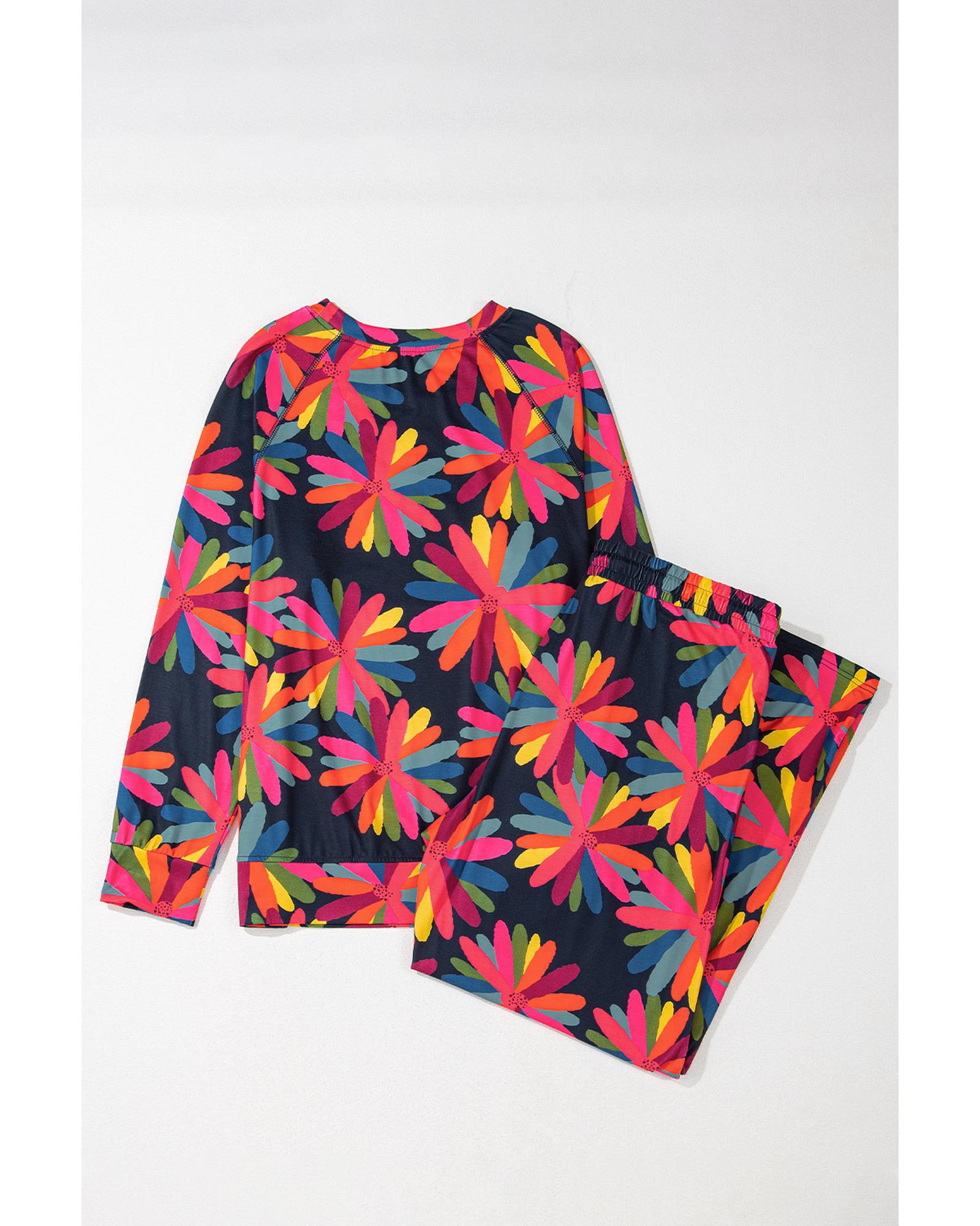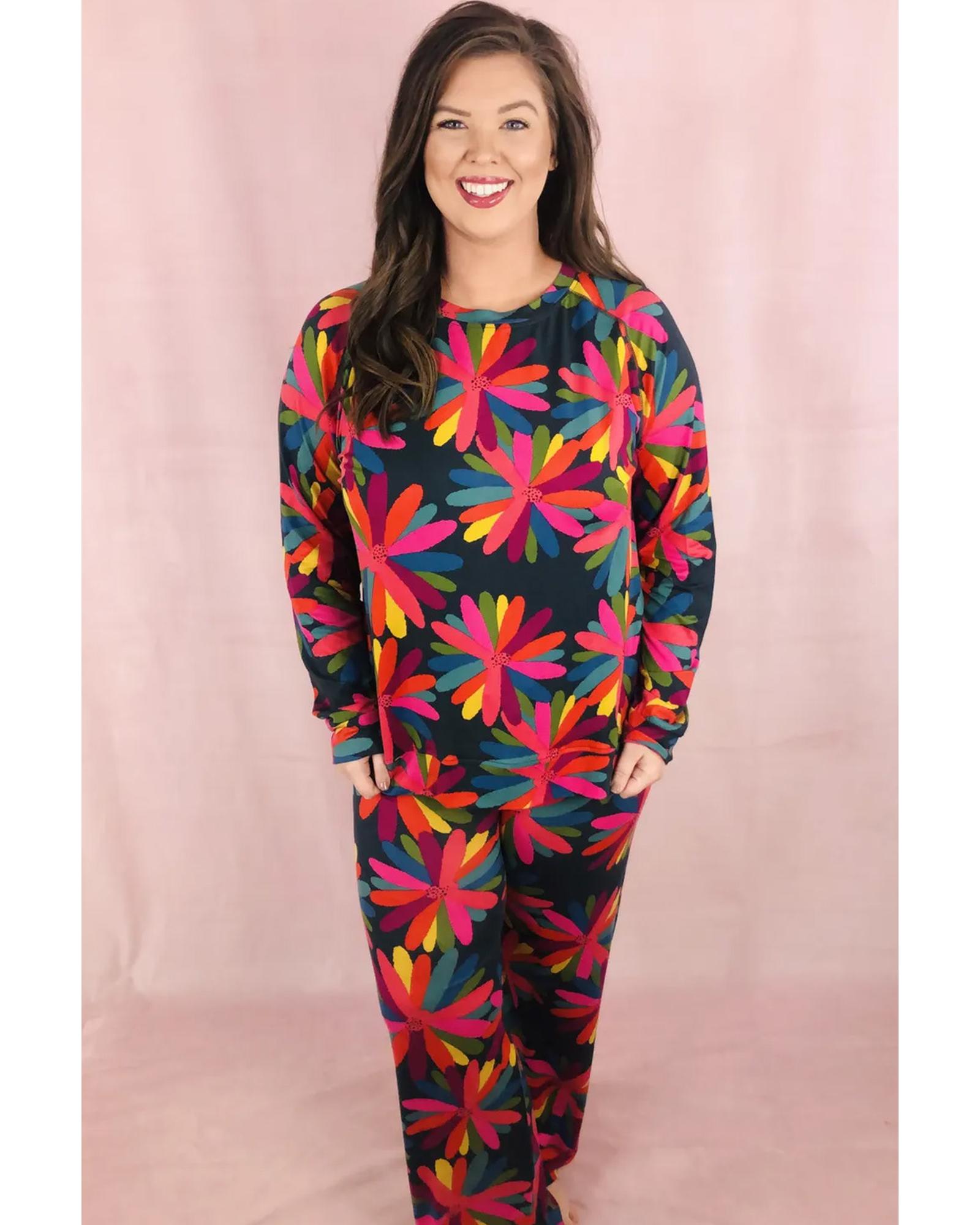 Black Plus Size Printed Long Sleeve and Pants Lounge Set – 2X