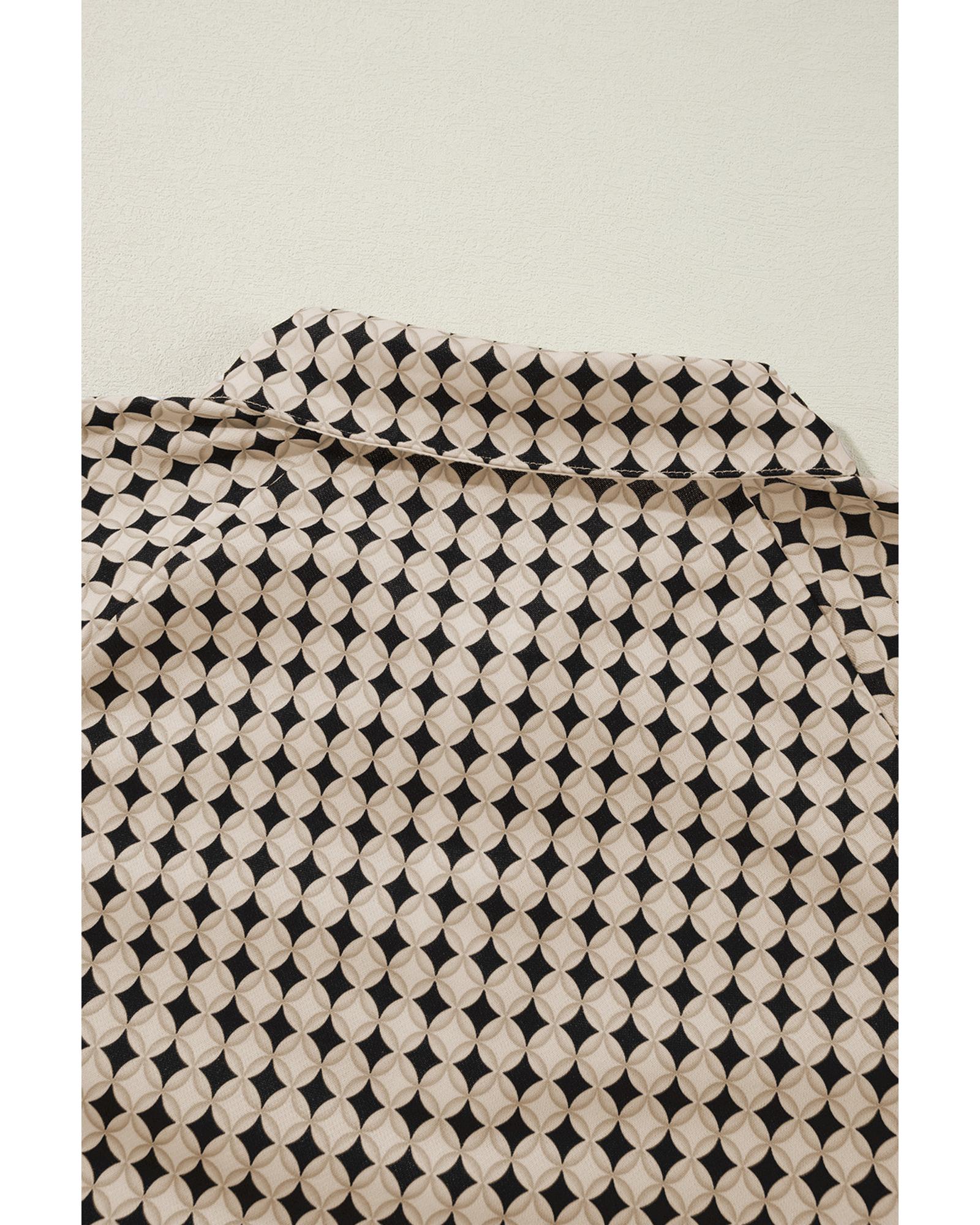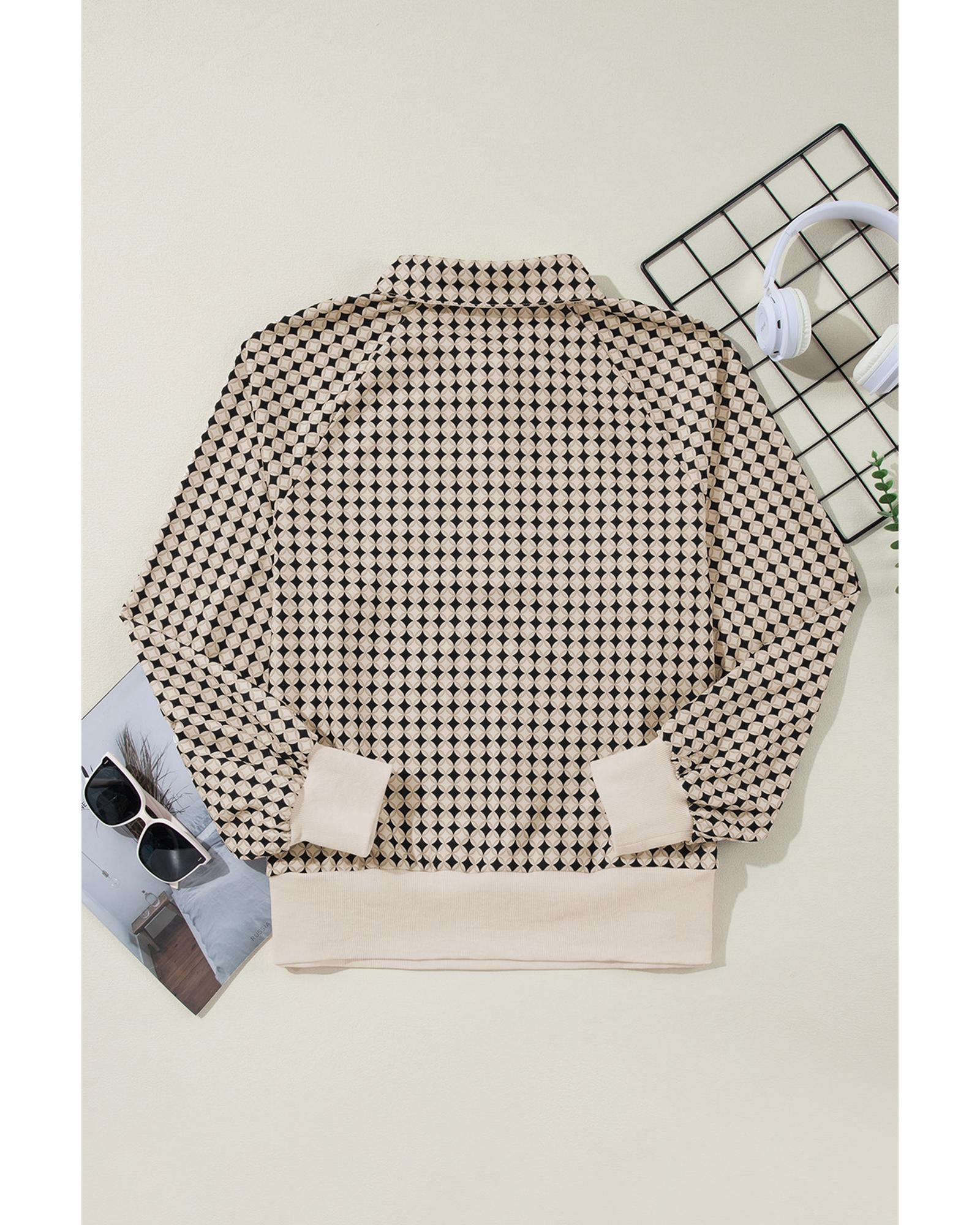 Brown Plus Size Printed Splicing Sleeve Ribbed Trim Sweater - 3X