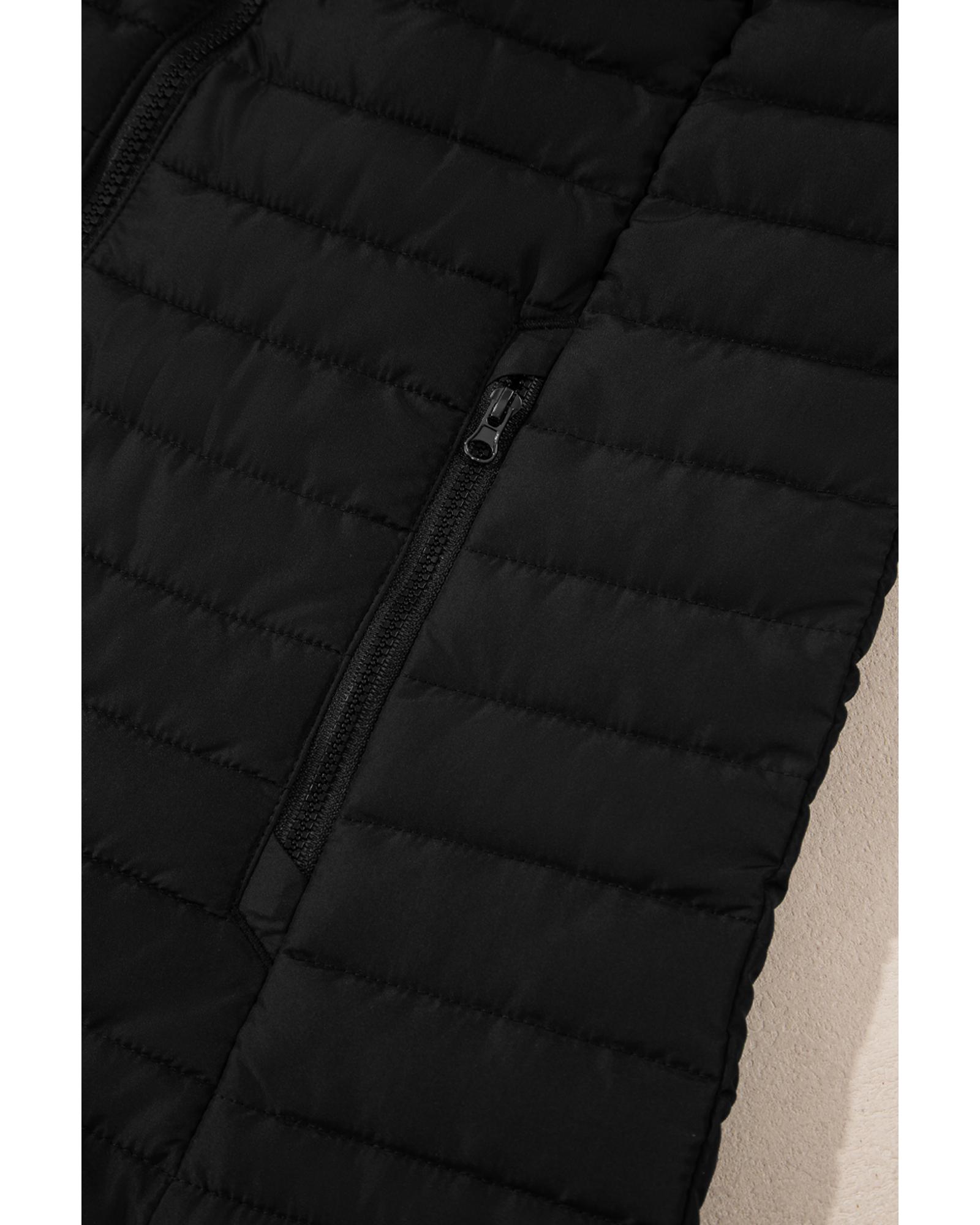 - Black plush collared quilted zipped puffer vest
