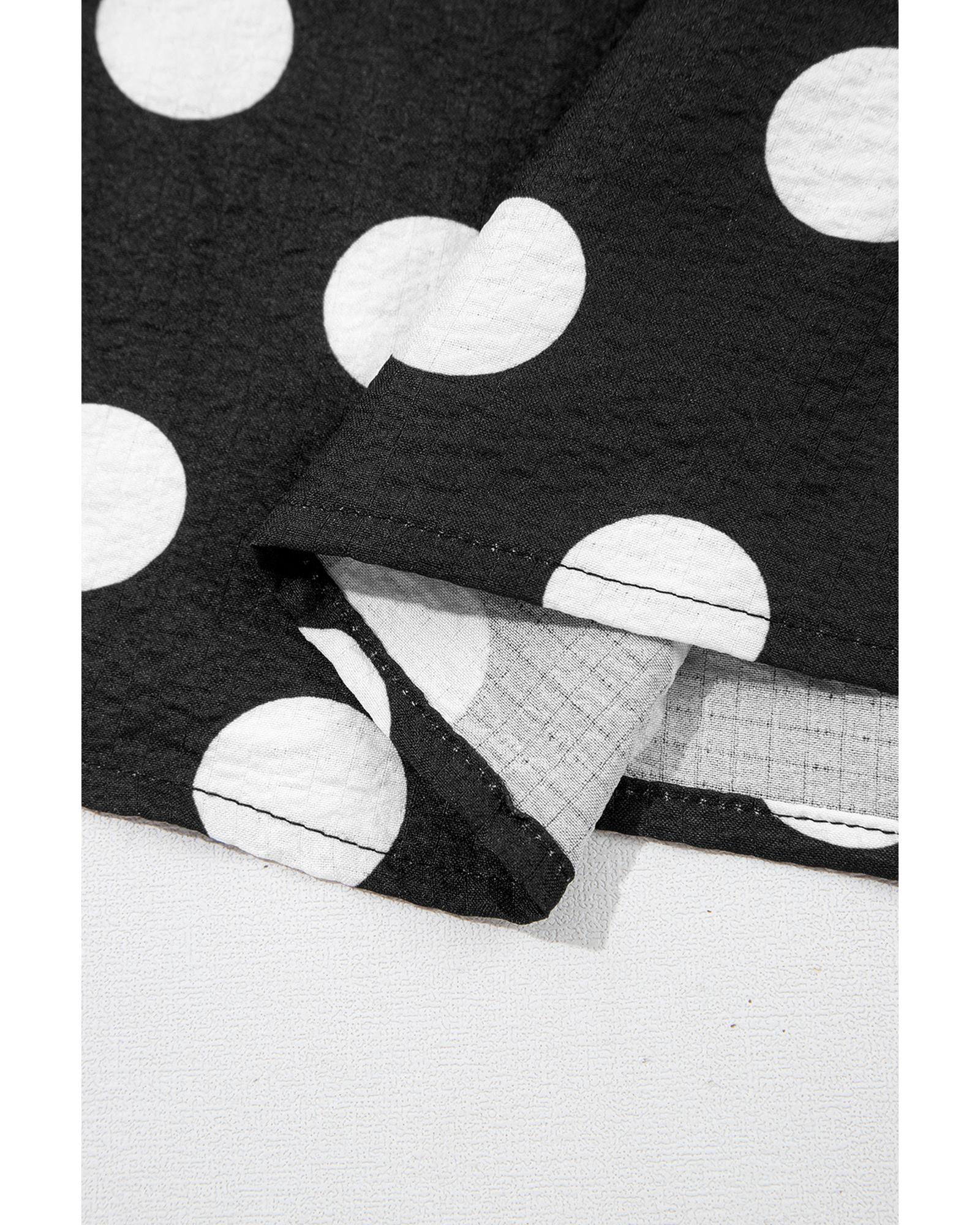 Black Polka Dot Print Ruffled Sleeve V Neck Blouse – M
