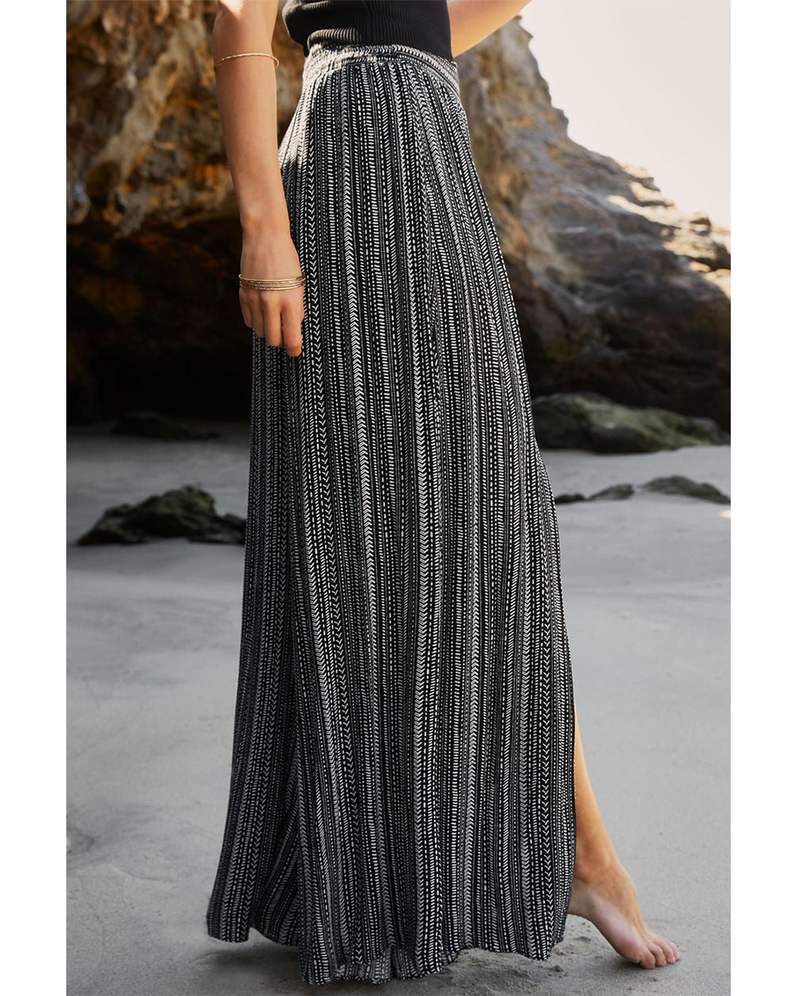 Black Printed Striped Printed Slit Wide Leg High Waist Pants – XL