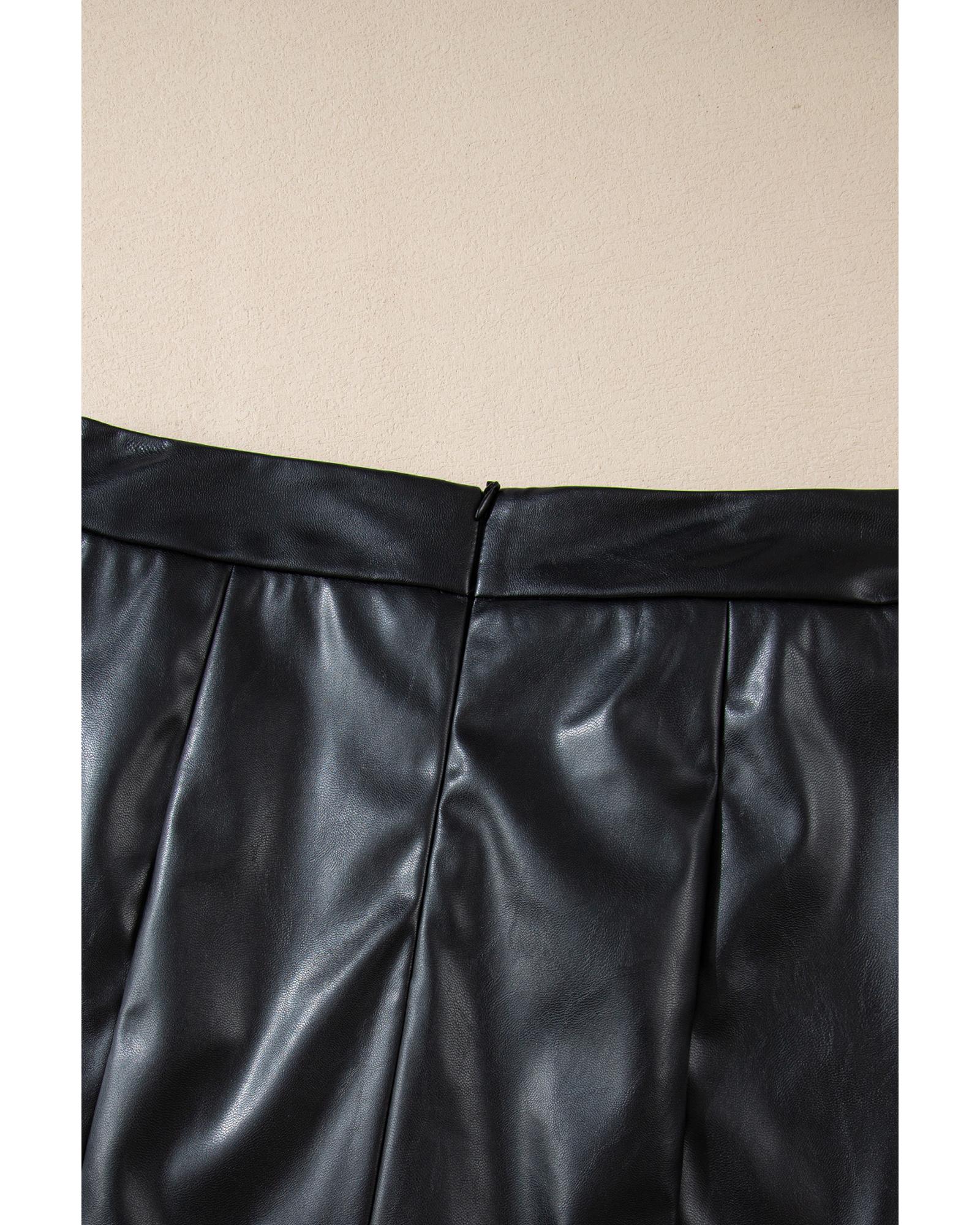 Black PU Leather Side Slits Slim Fit High Waist Mini Skirt – L