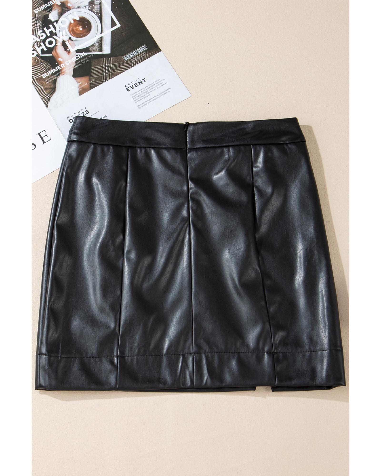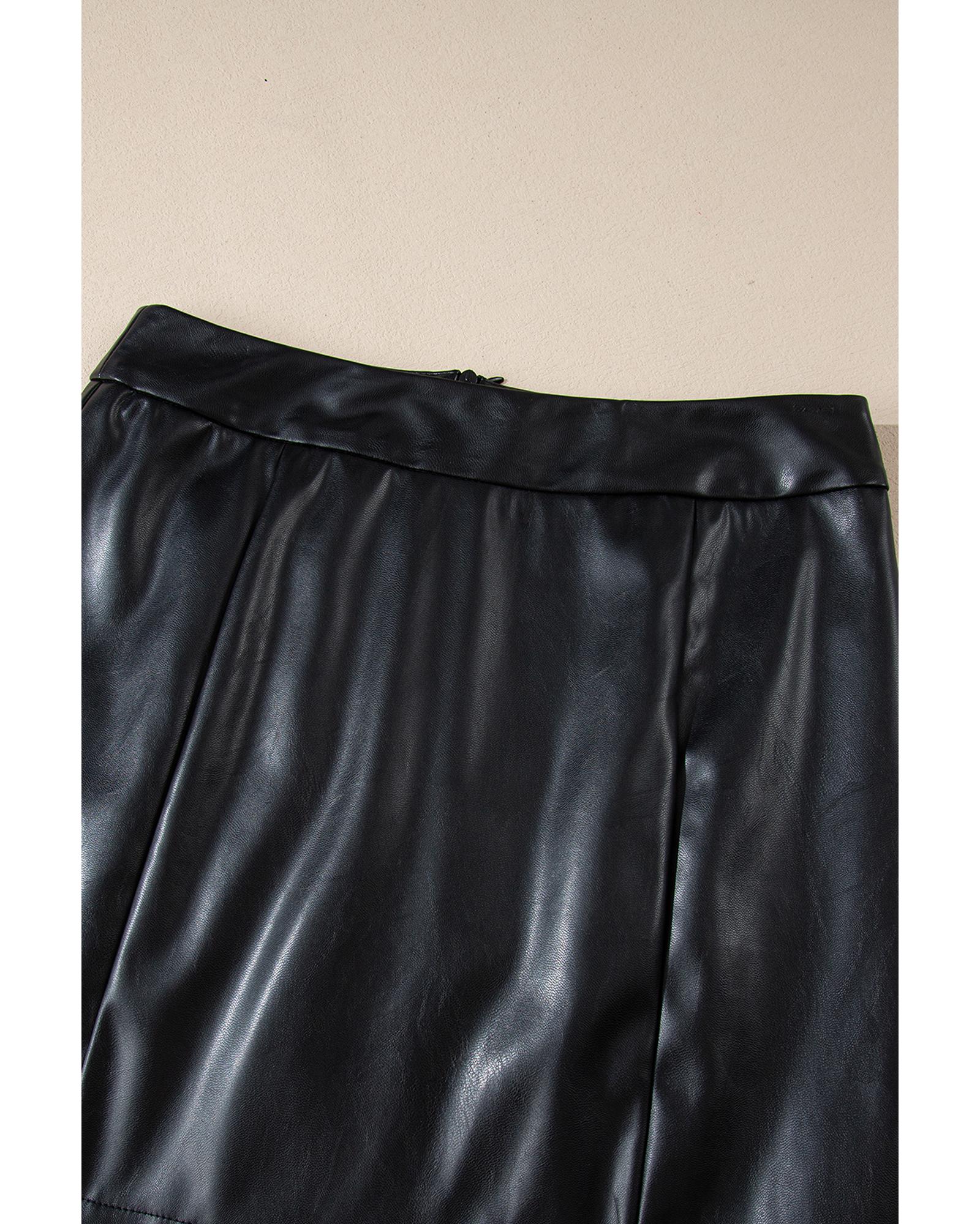 Black PU Leather Side Slits Slim Fit High Waist Mini Skirt – XL