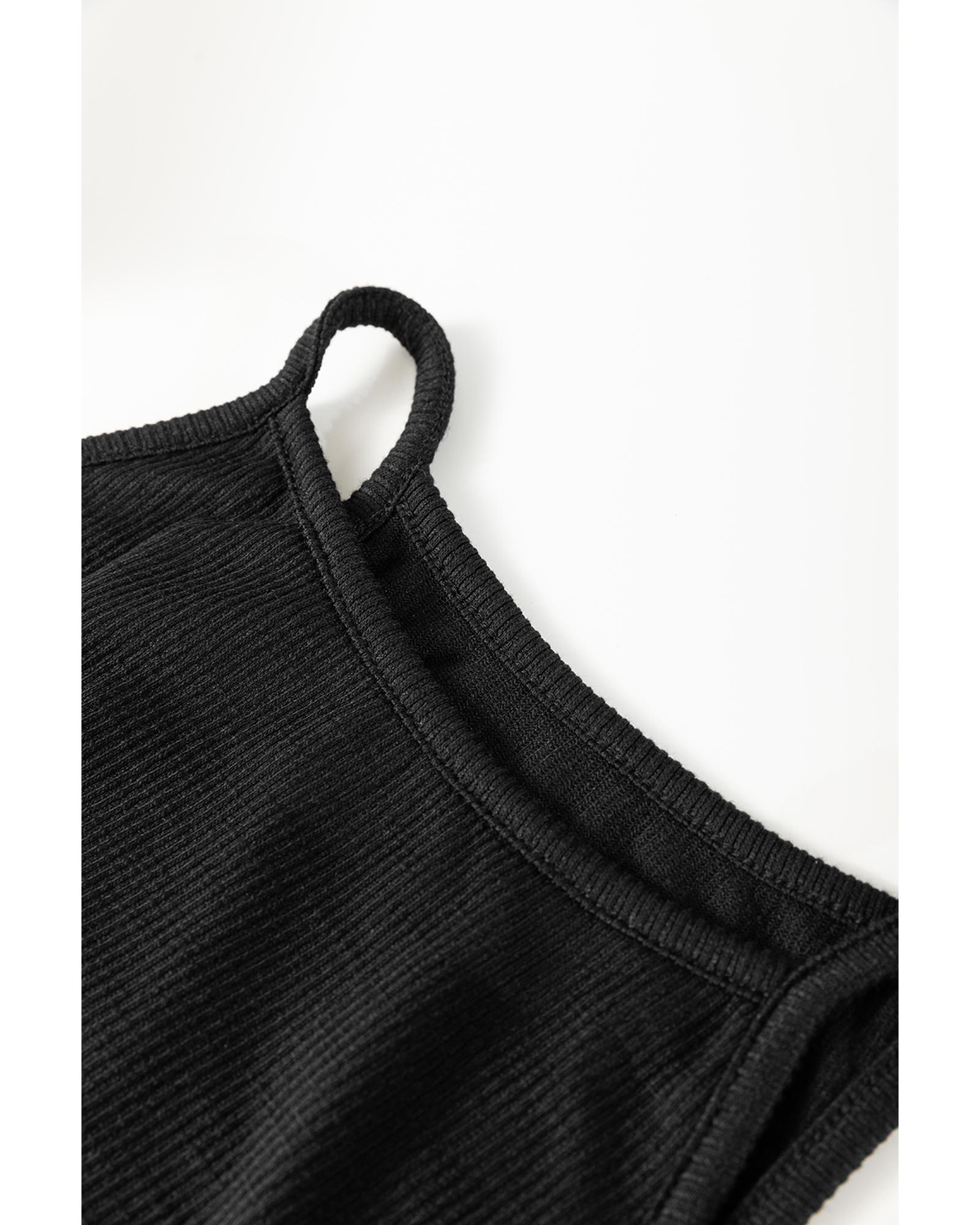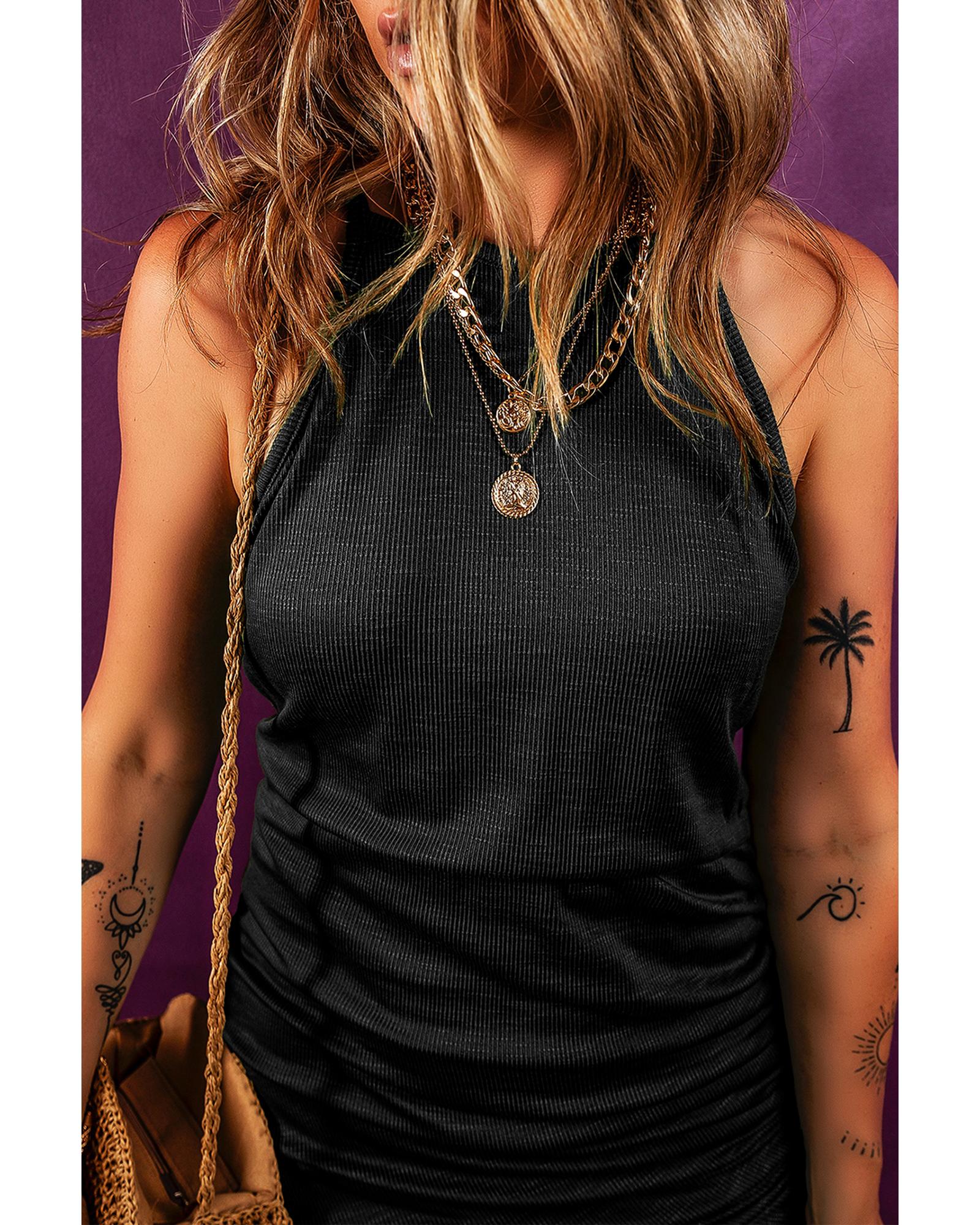 • Black Racerback Ribbed Knit Drawstring Bodycon Dress
