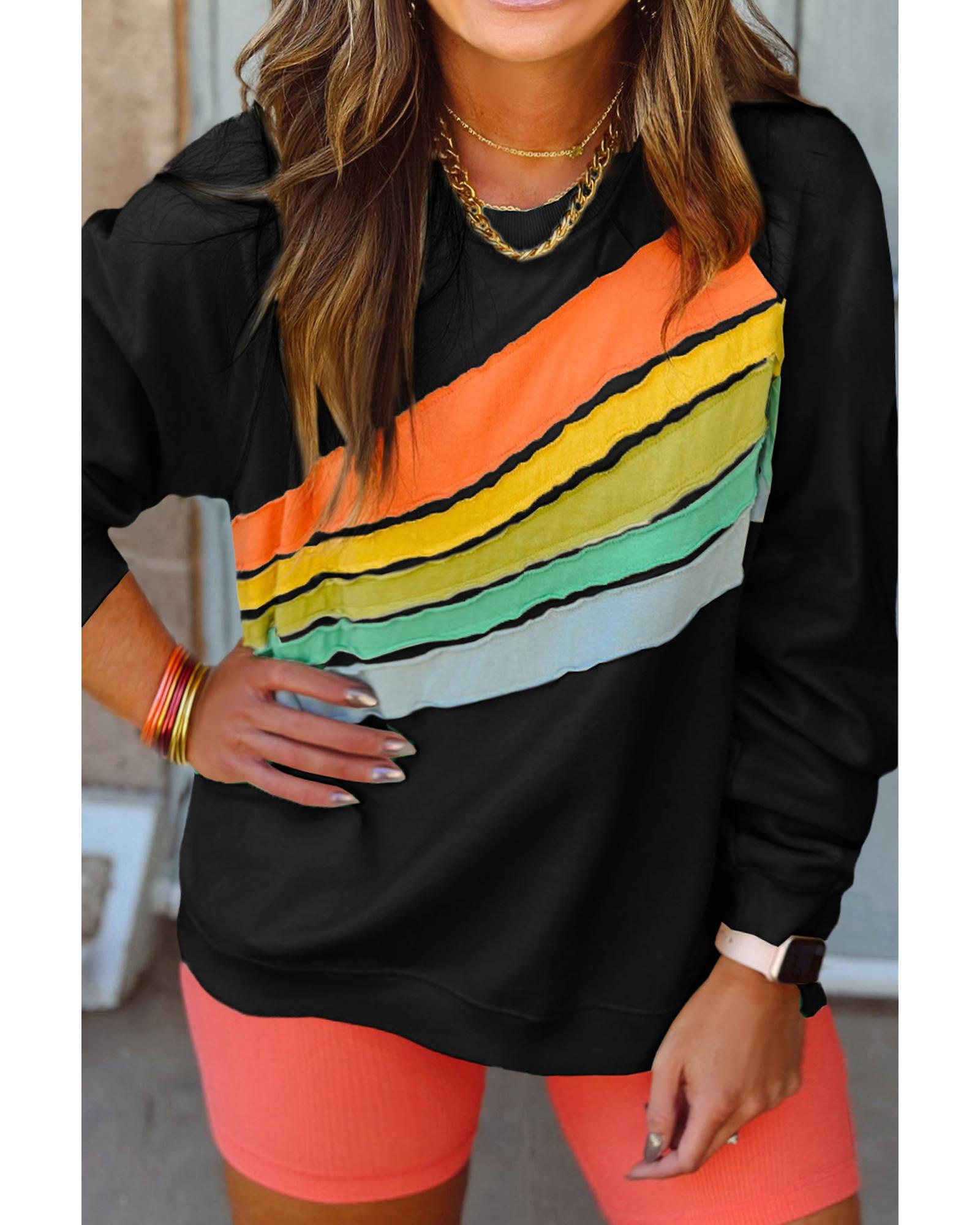 Black Rainbow Raglan Sleeve Crew Neck Plus Size Sweatshirt – 3X
