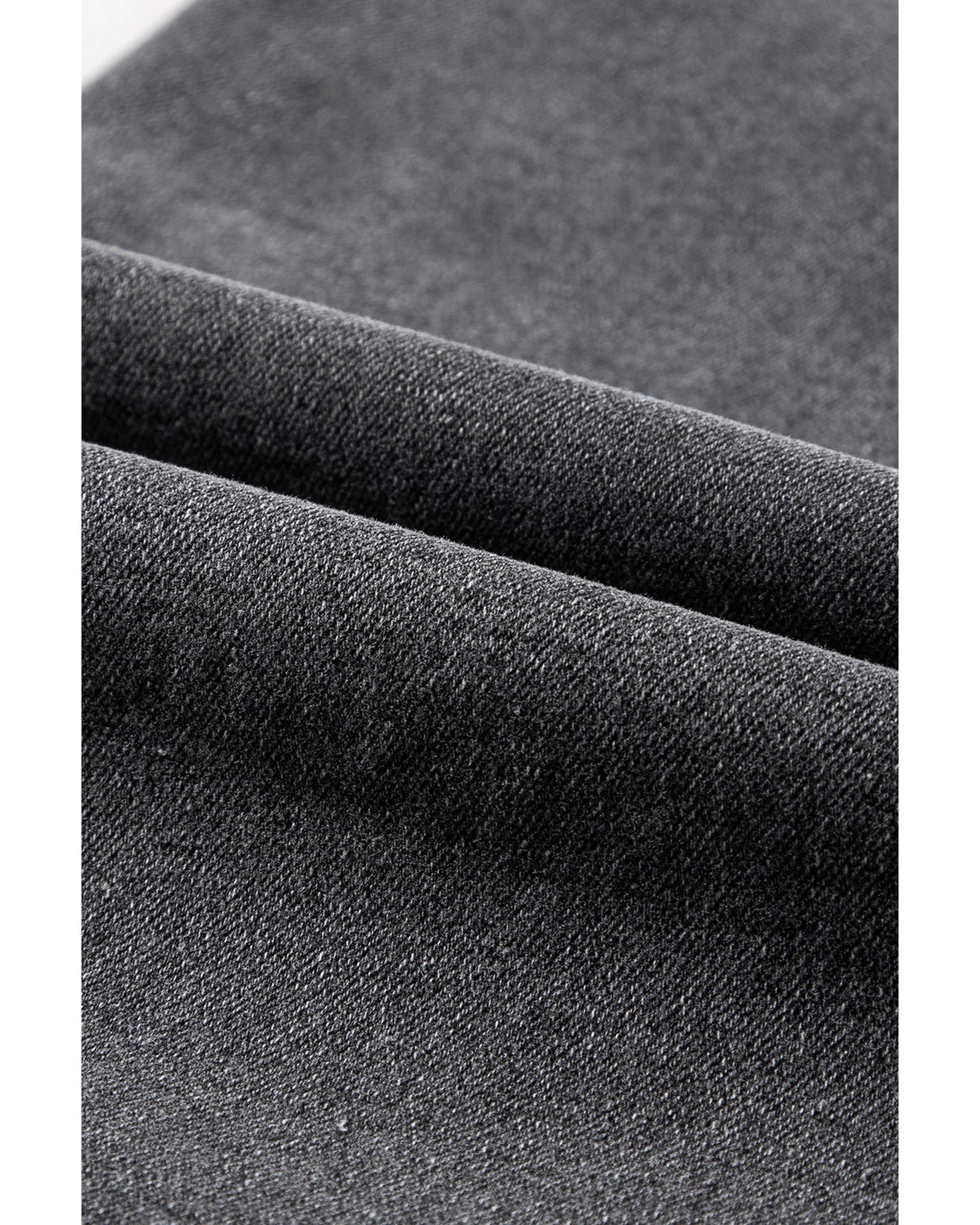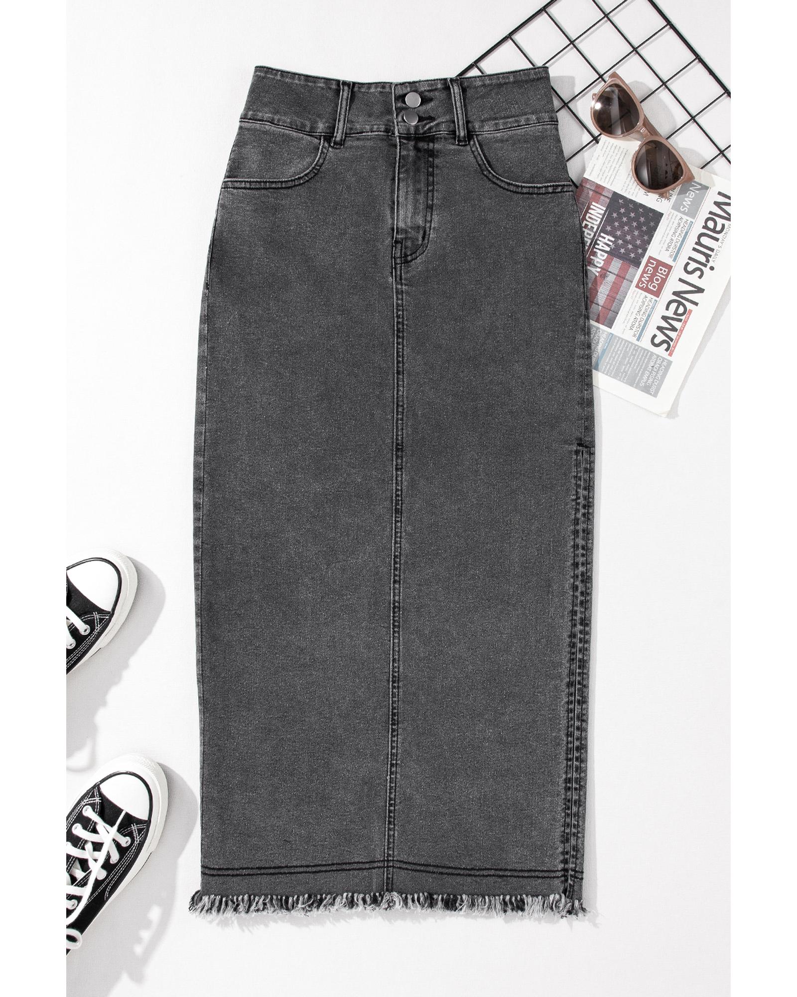 Black Raw Edge Side Slits Buttoned Midi Denim Skirt - XL