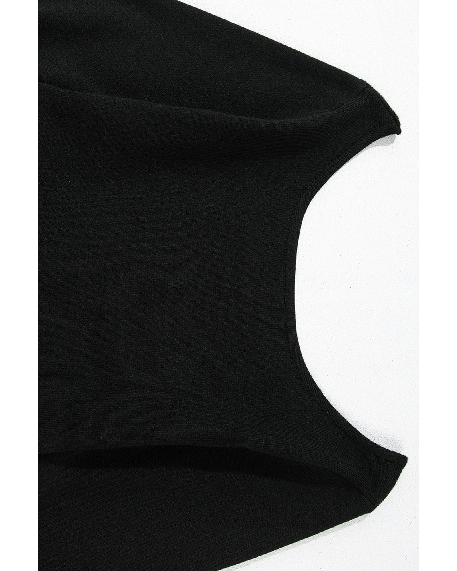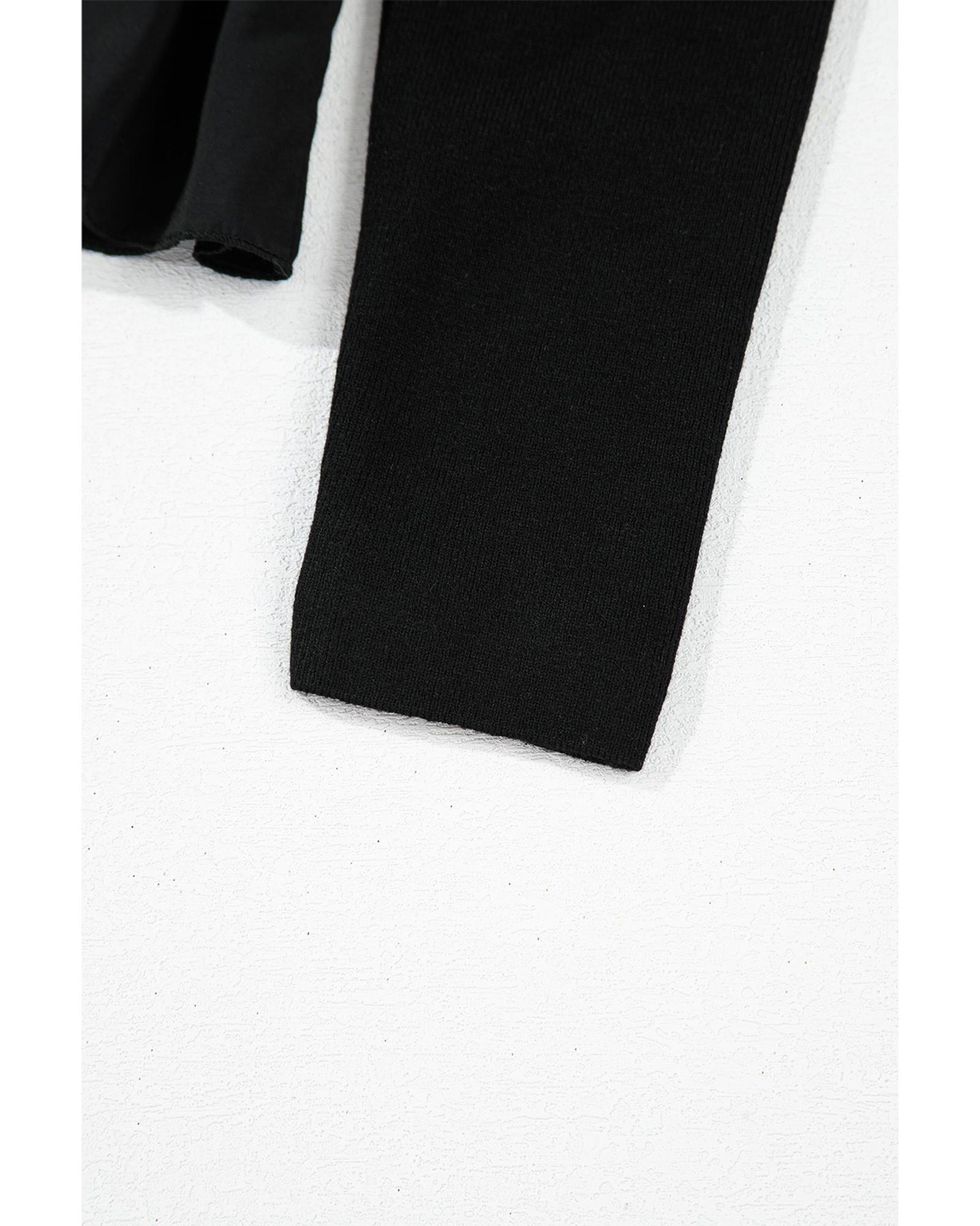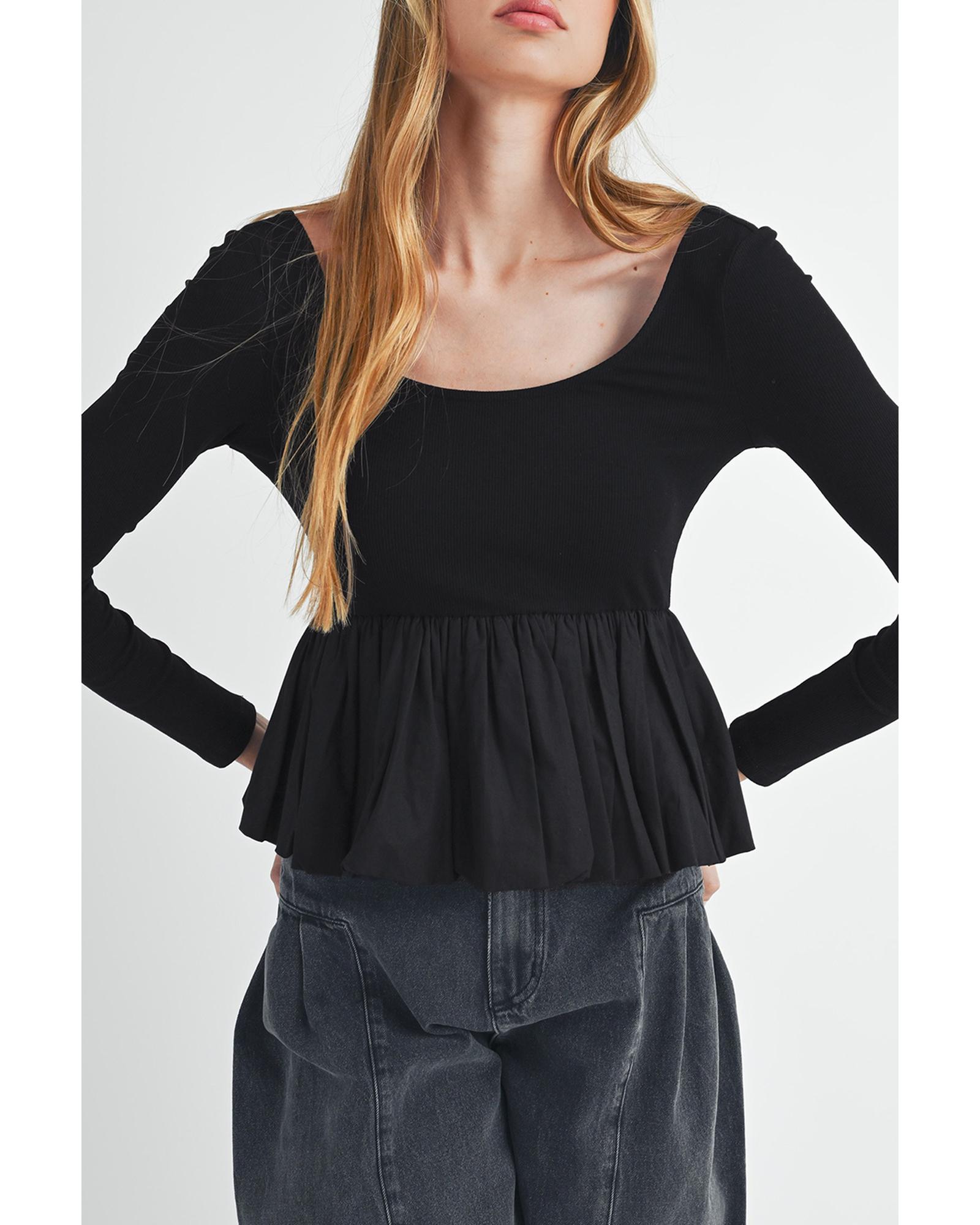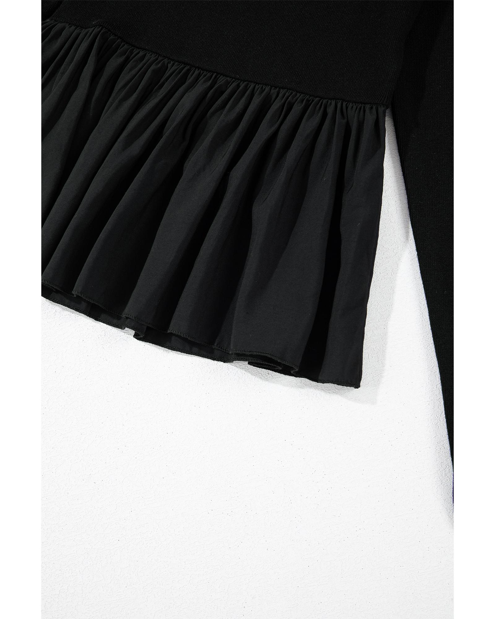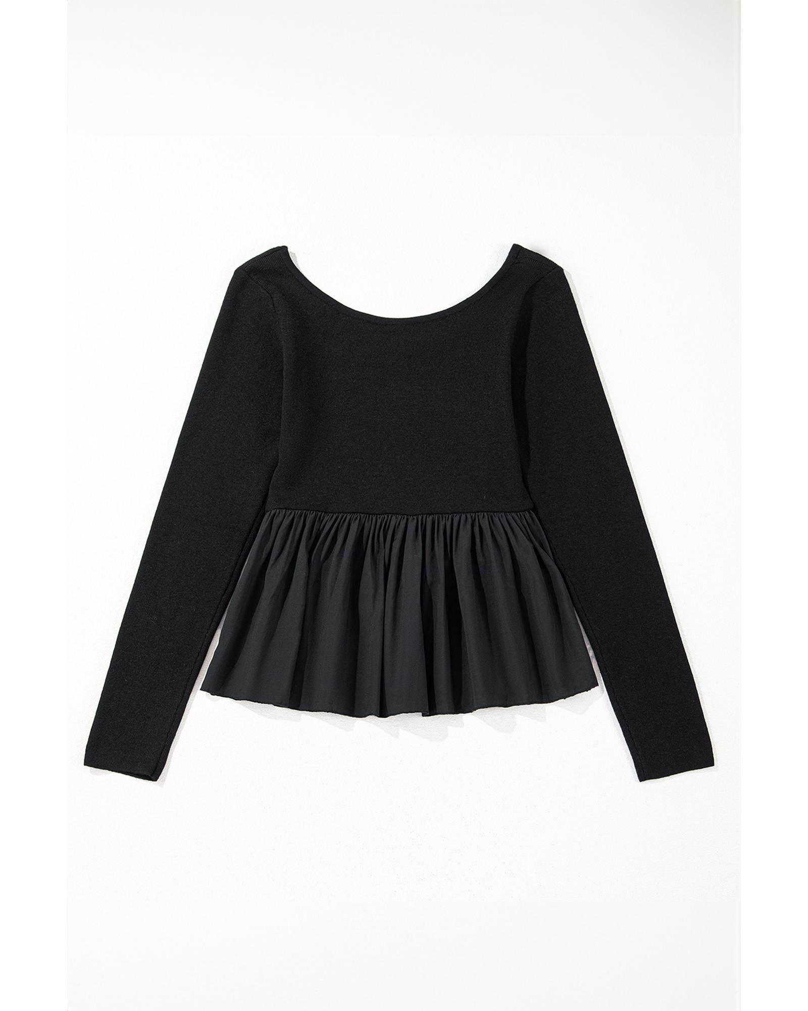 Black Ribbed Knit Long Sleeve Scoop Neck Peplum Patchwork Top – XL