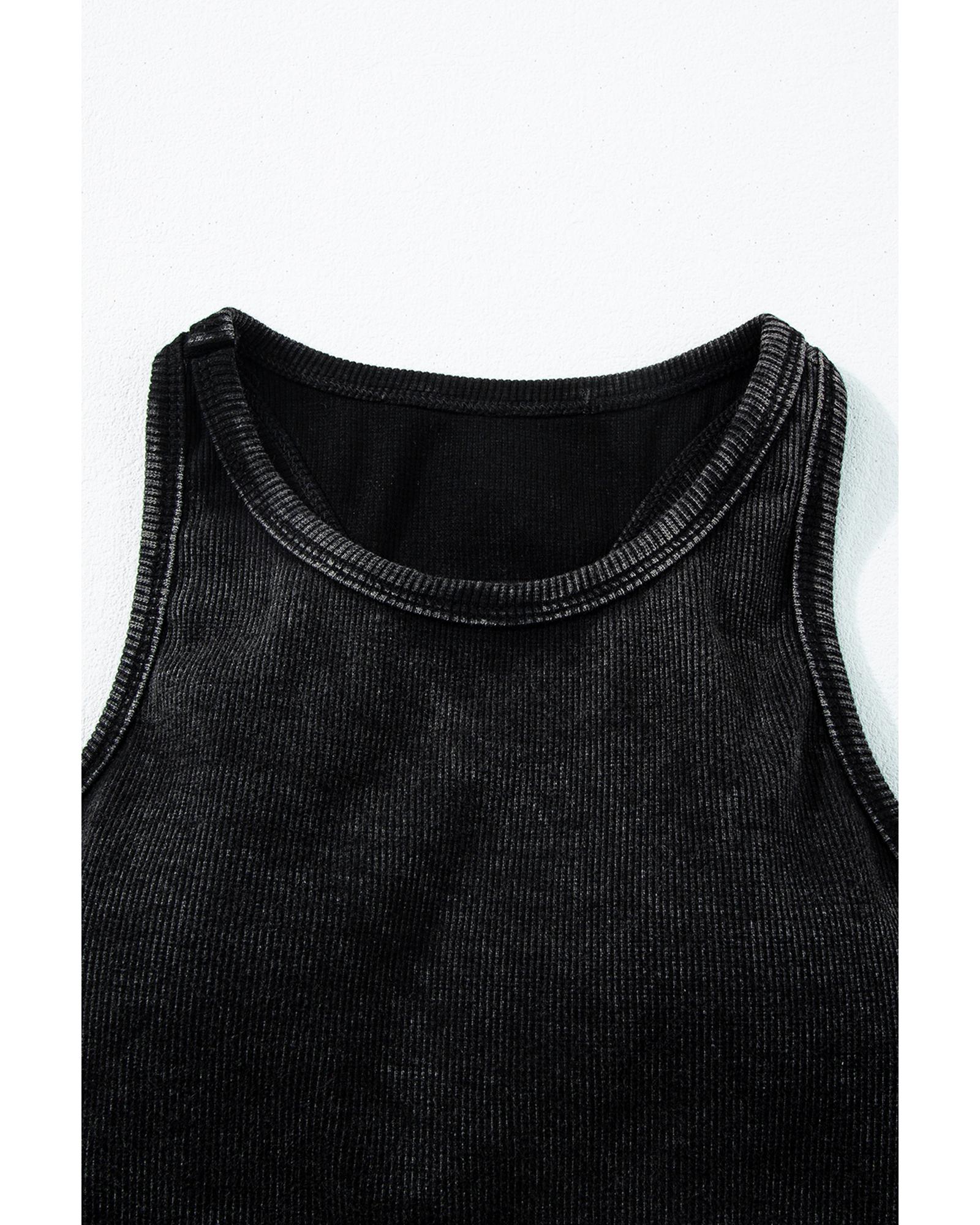 Black Ribbed Mineral Wash Racerback Cropped Tank Top – L