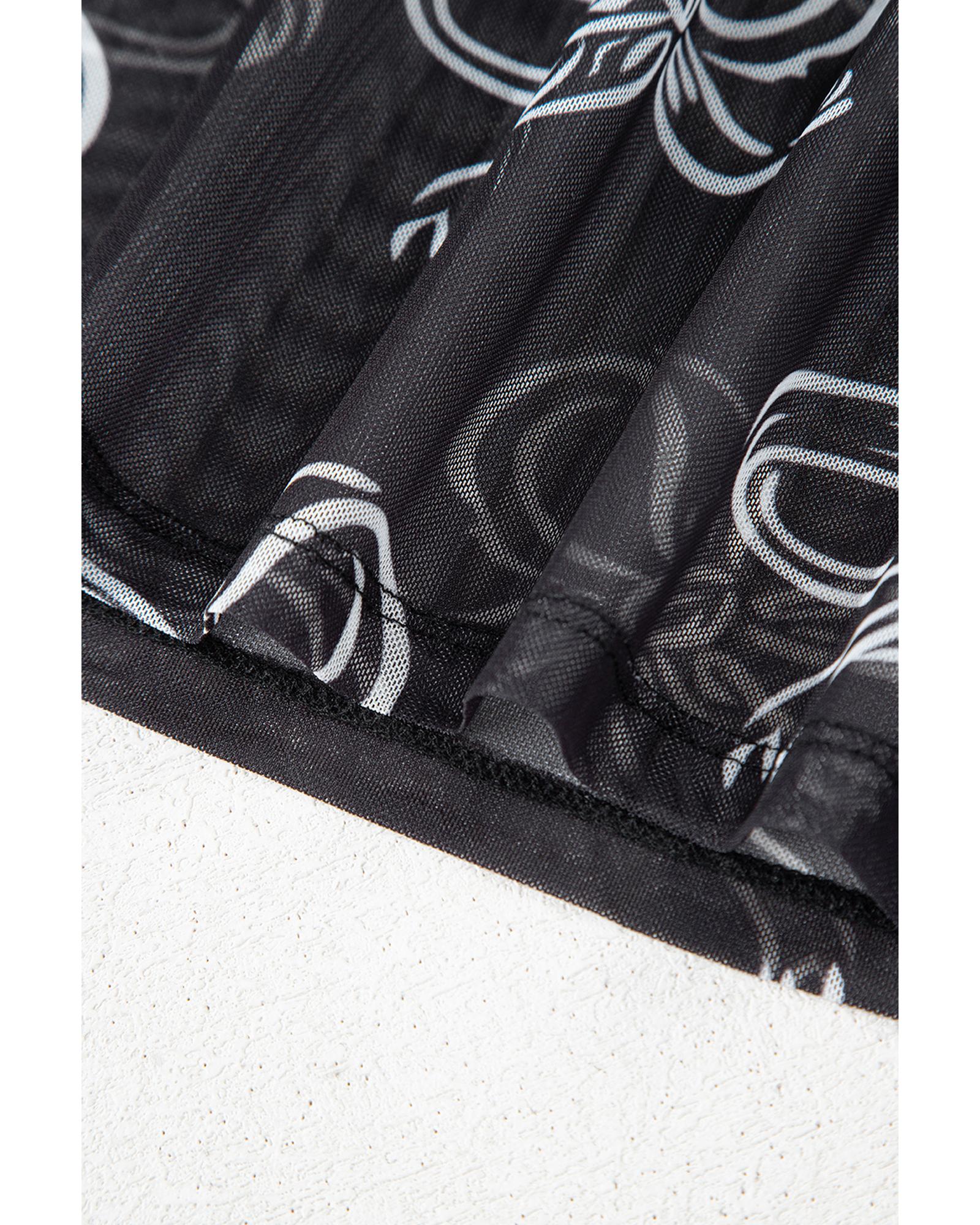 Black Round Neck Bow Print Long Sleeve Mesh Top – XL