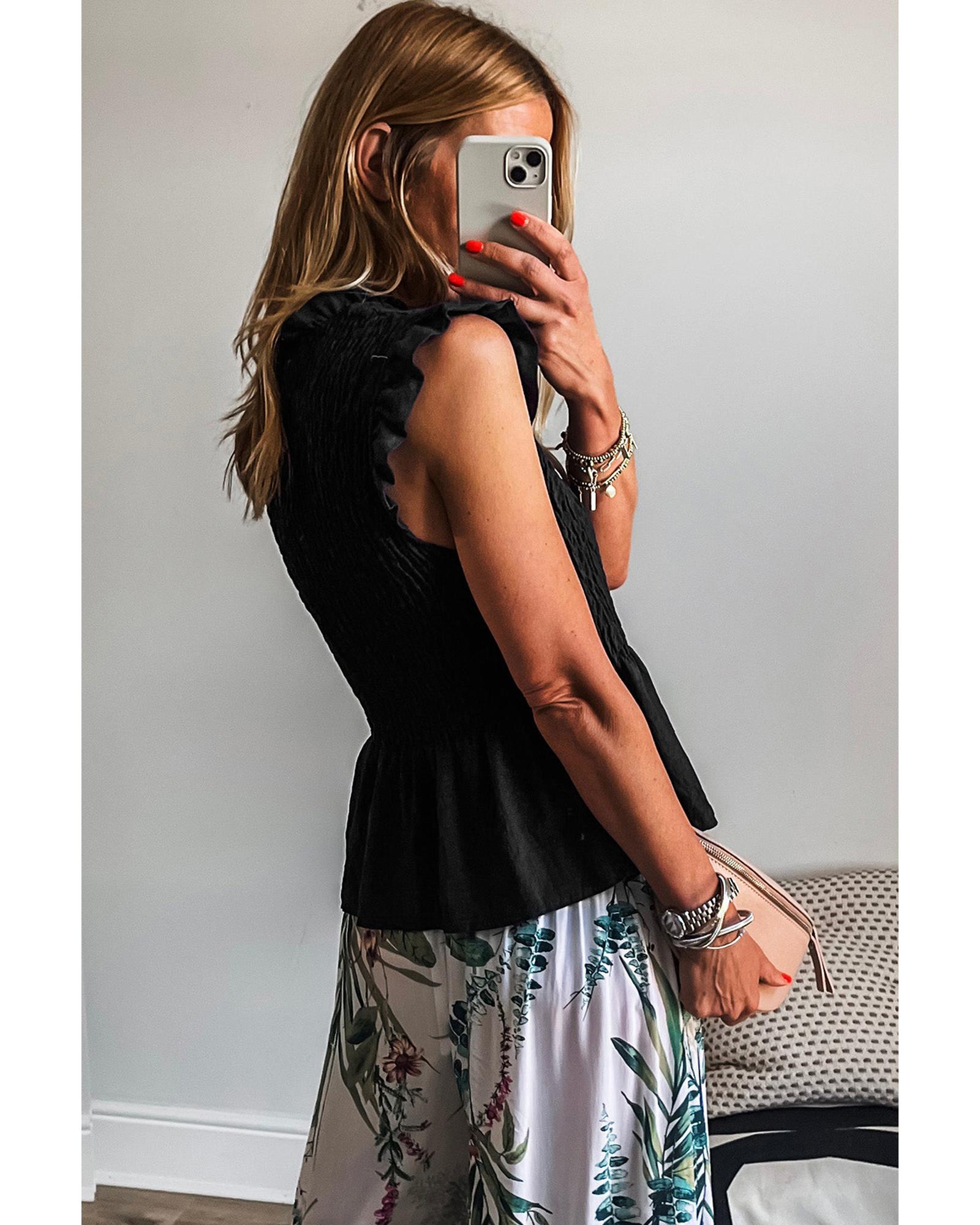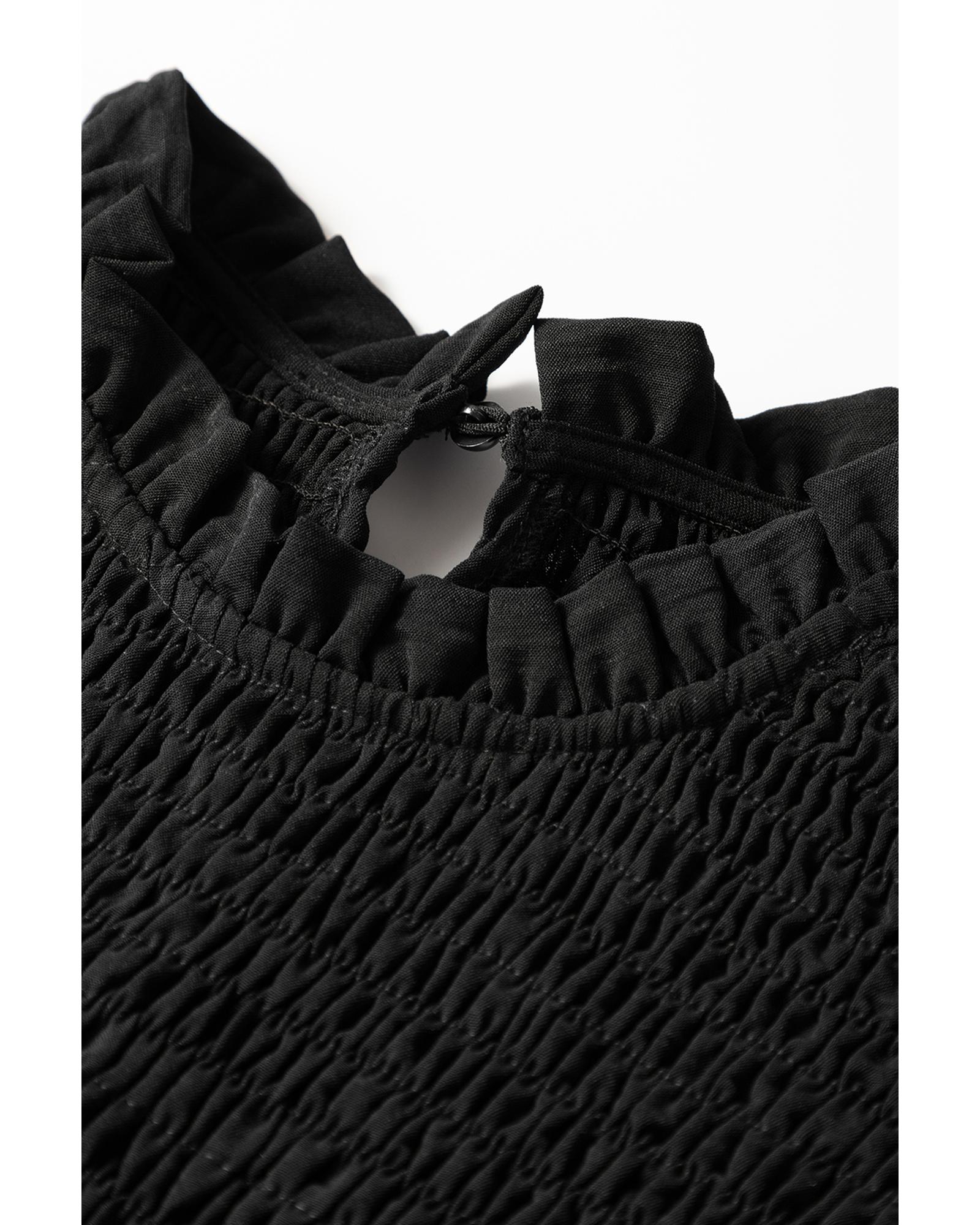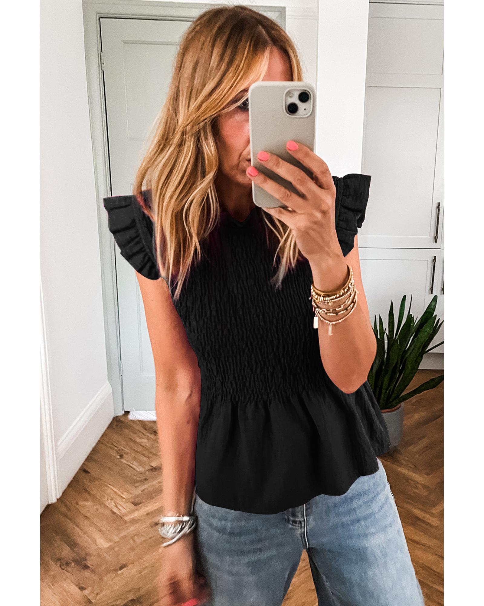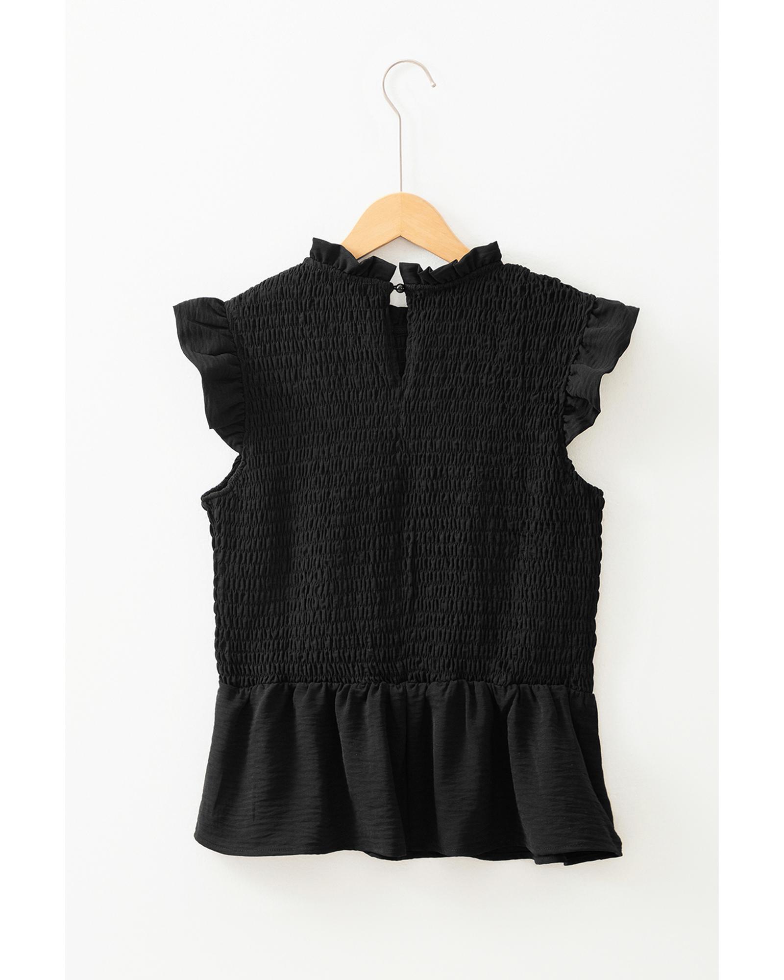 Black Ruffle Short Sleeve Shirred Peplum Top – S