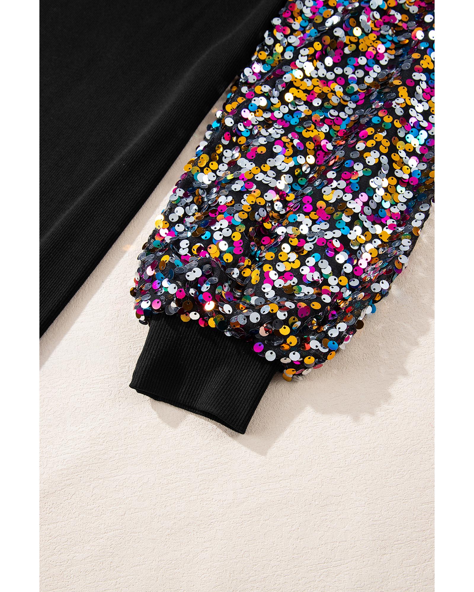 - Black Sequin Bishop Sleeve U Neck Mini Sweater Dress