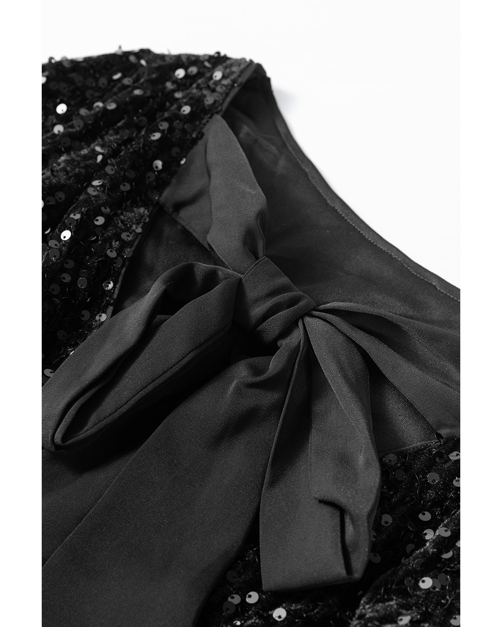 Black Sequin Long Sleeve Knot Cutout Back Mini Dress – L