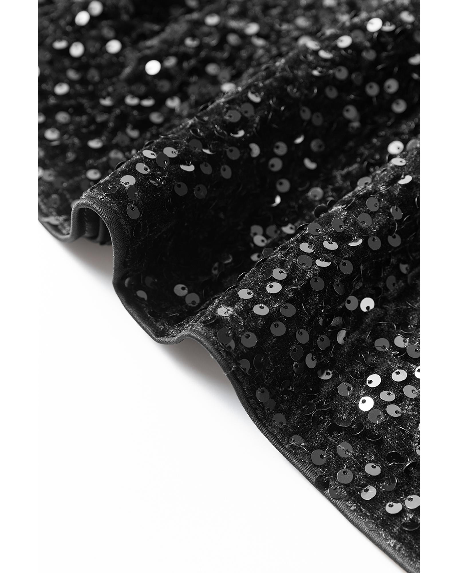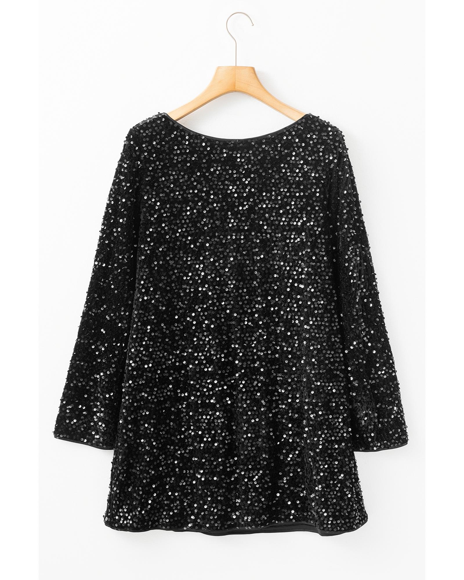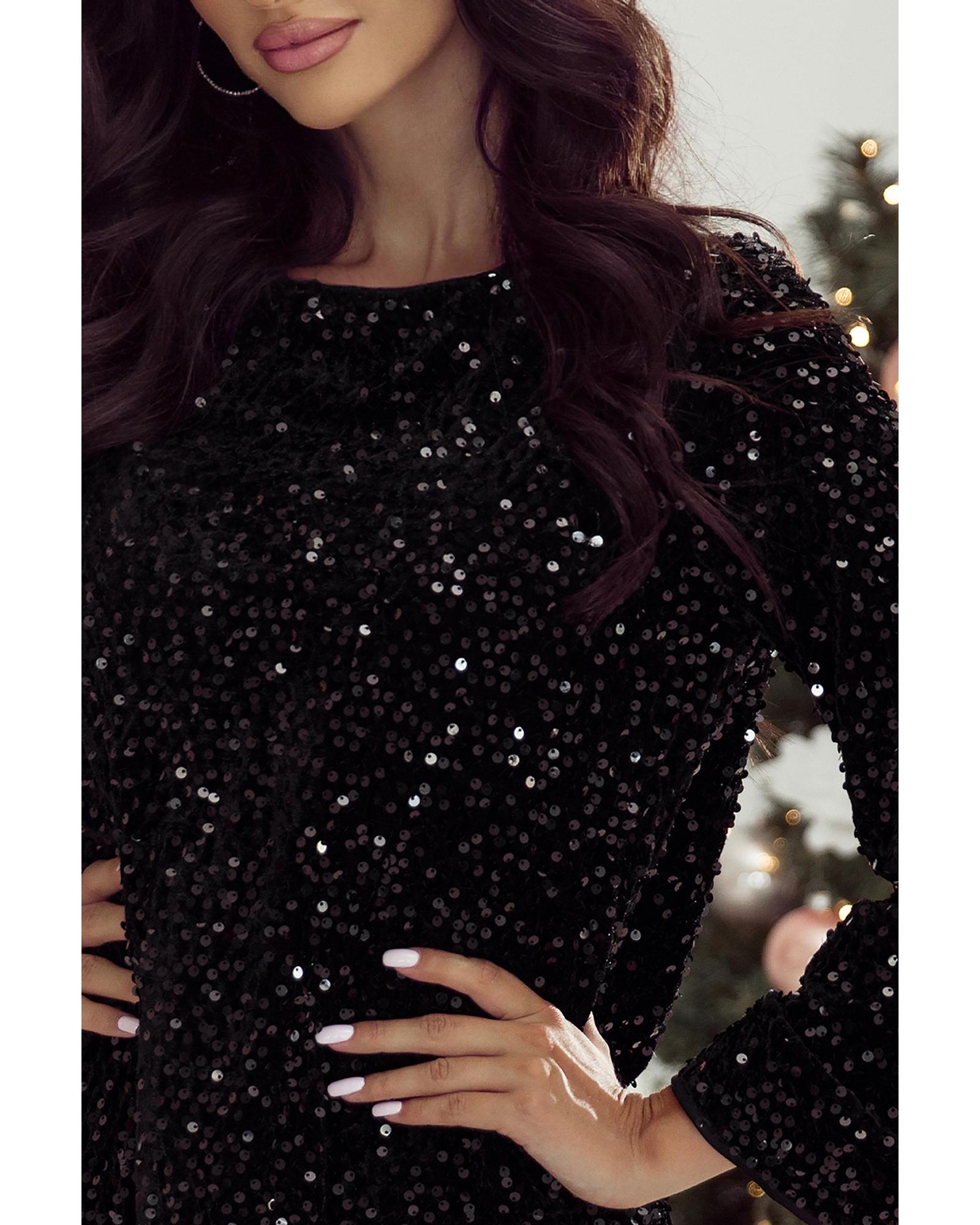 - Black sequin mini dress