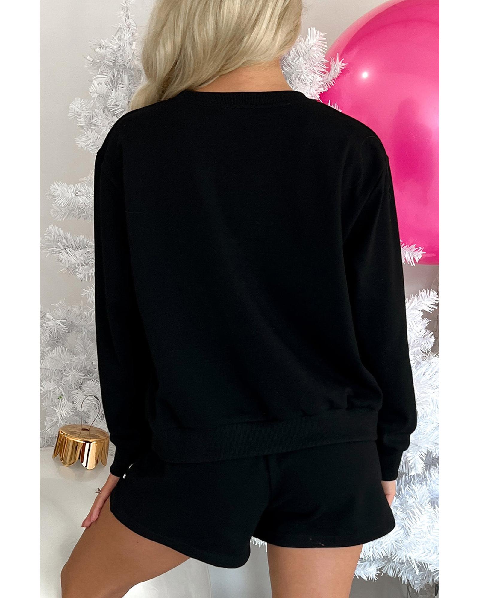 Black Sequin Merry Graphic Pullover and Shorts Outfit – XL