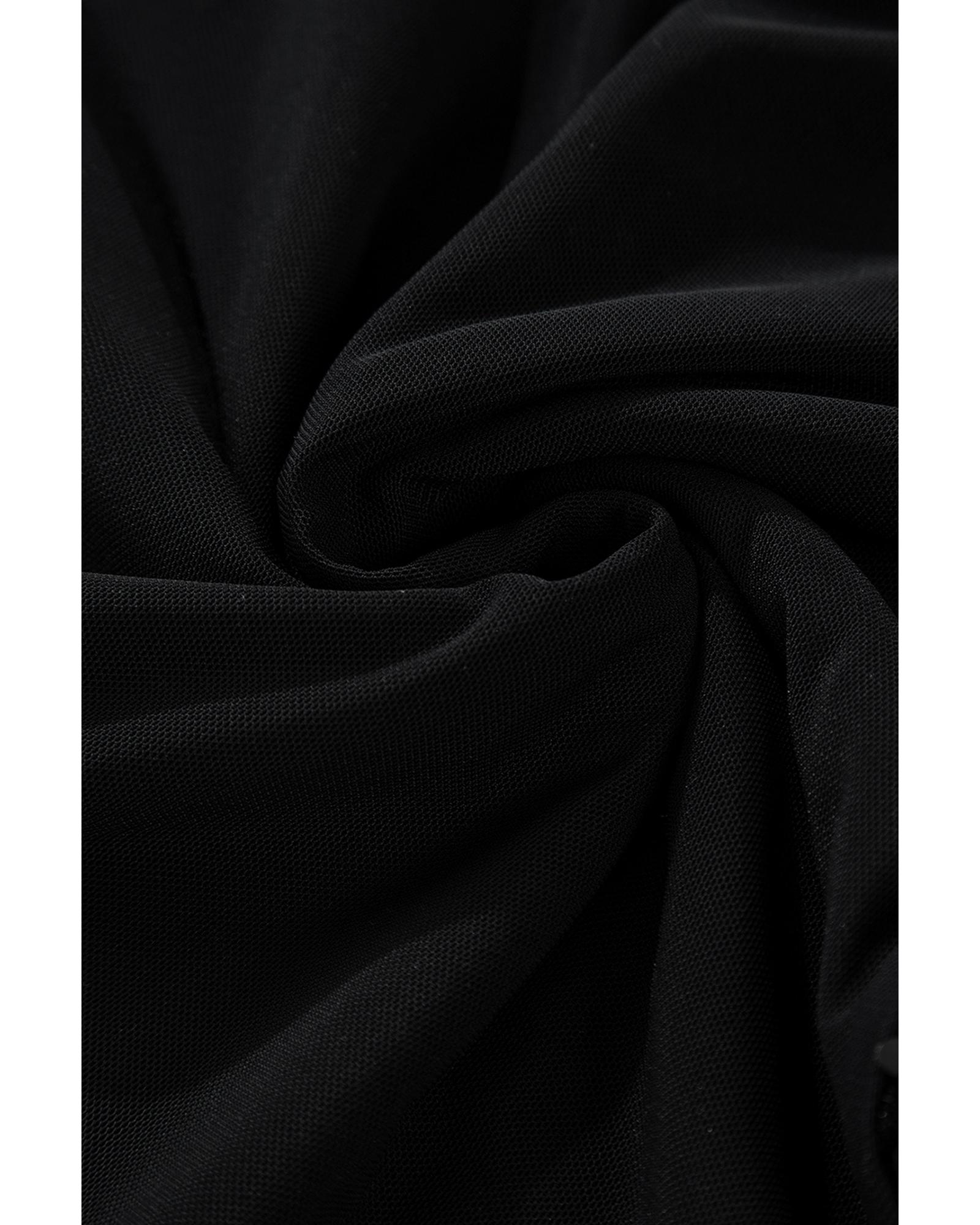 Black Sequin Velvet Sheer Mesh Mock Neck Blouse – S