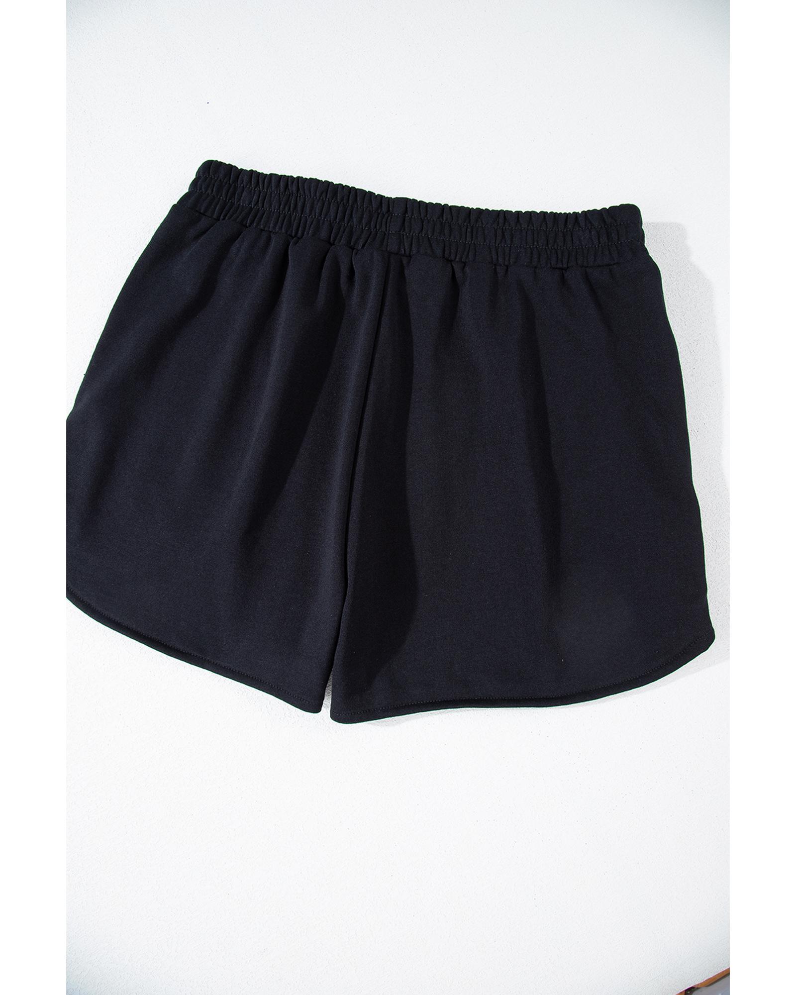 Black Sequined COFFEE Loose Fit Sweatshirt and Shorts Set - S