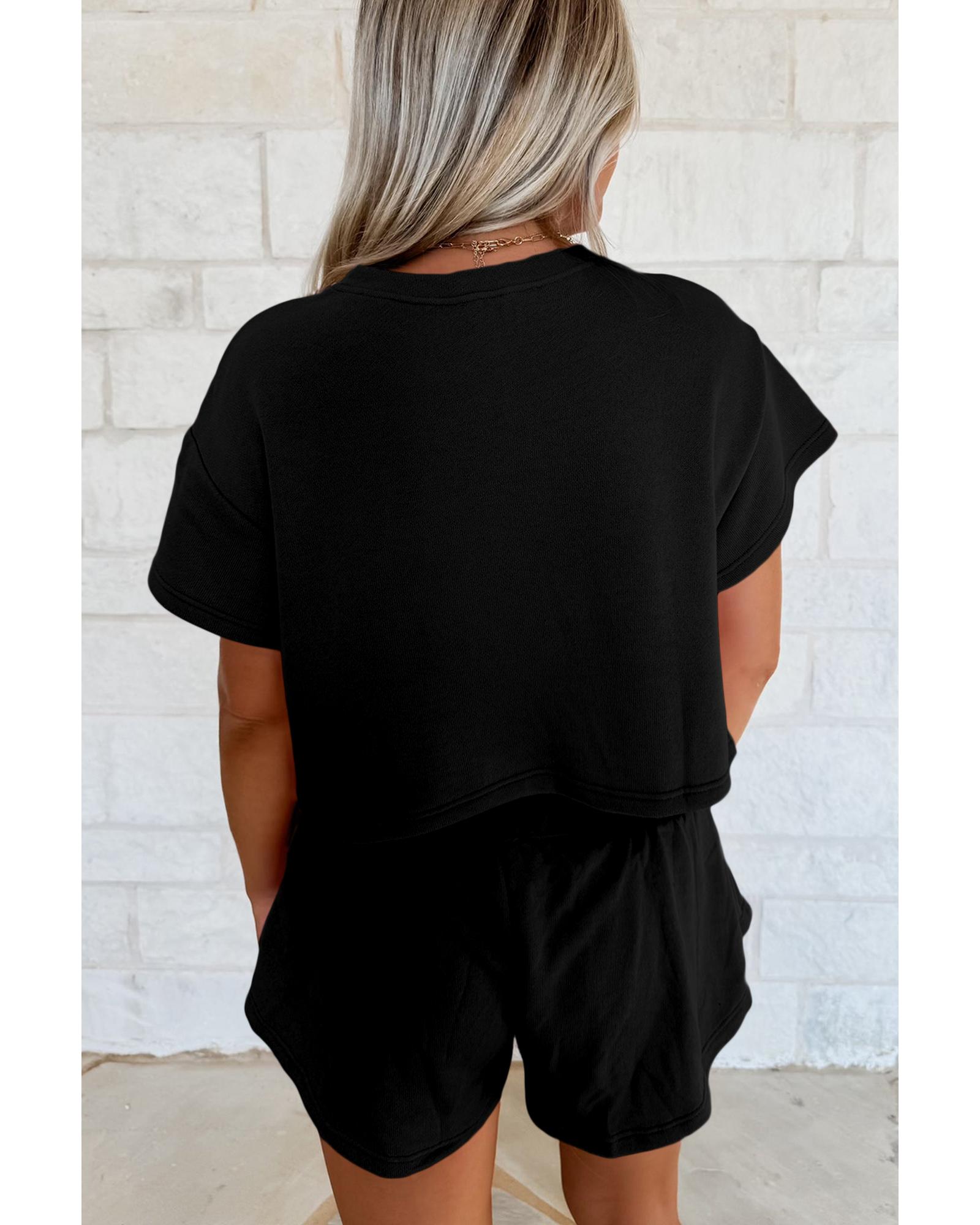 Black Sequined Flag Bow Pattern Short 2pcs Skort Set – L