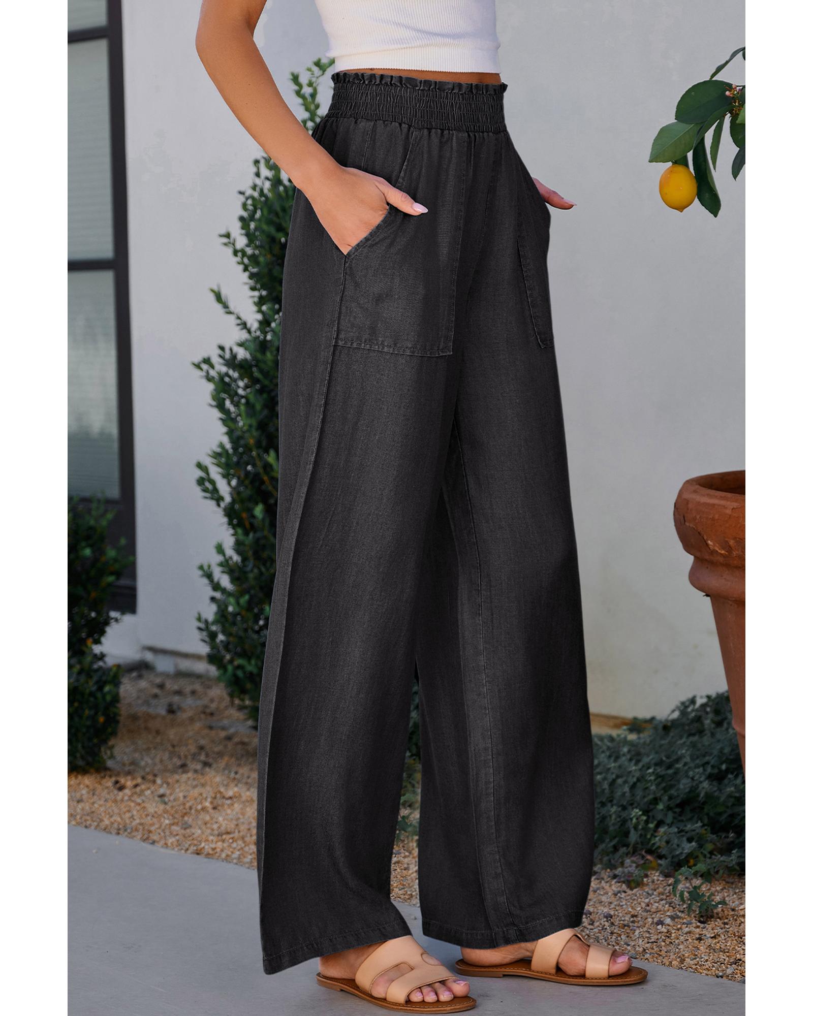 Black Side Pockets Frilled Smocked High Waist Wide Leg Jeans – L