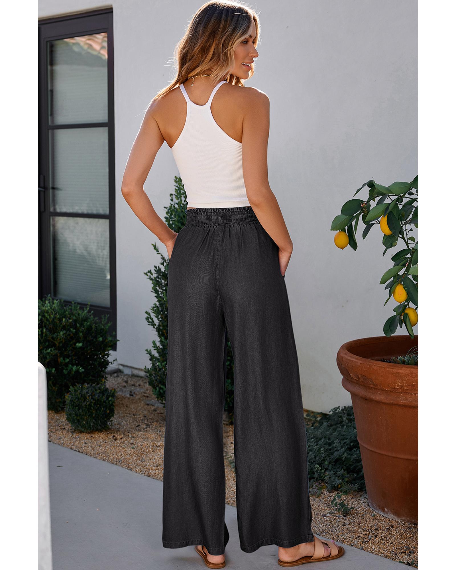 Black Side Pockets Frilled Smocked High Waist Wide Leg Jeans – S