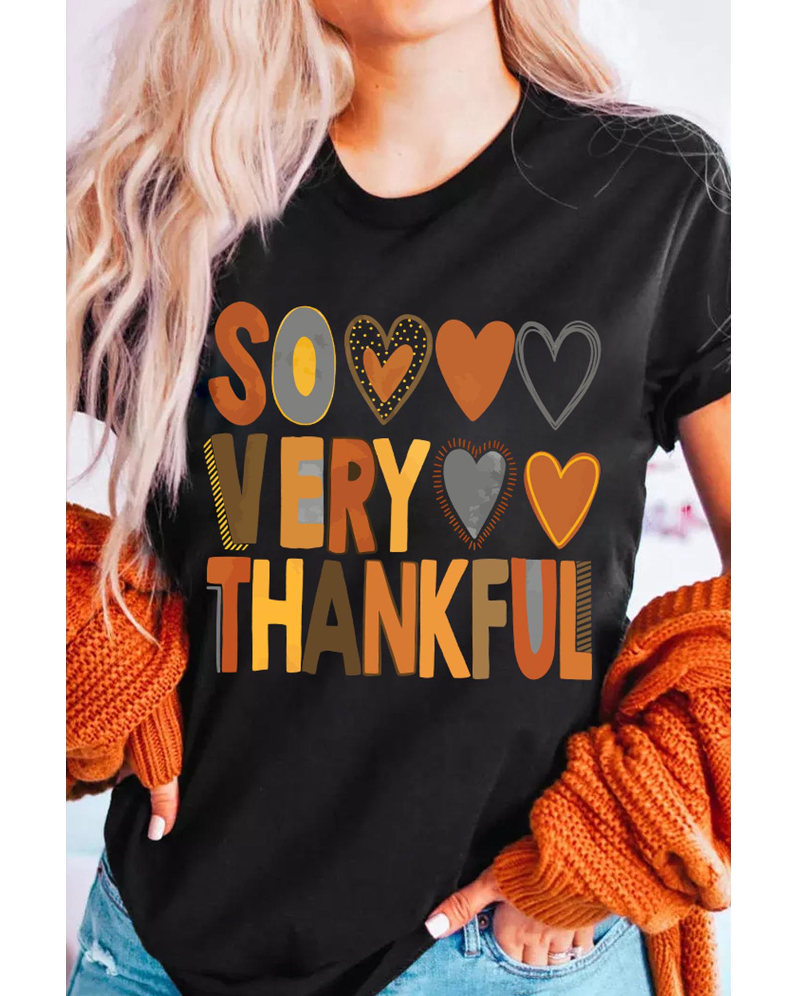Black So Very Thankful Heart Printed Crewneck Thanksgiving T Shirt – L