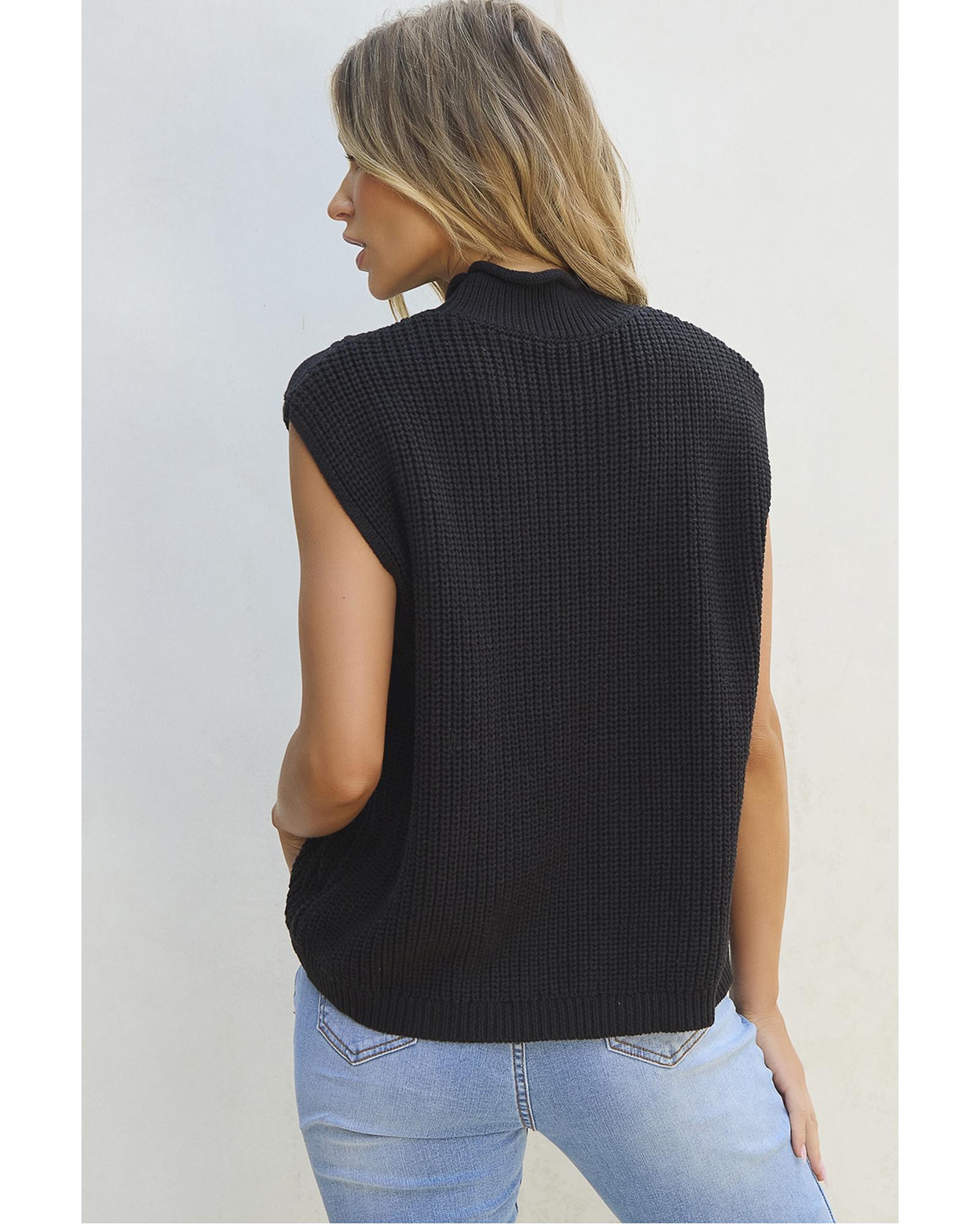 Black Solid Color Cable Knit High Neck Sweater Vest – L