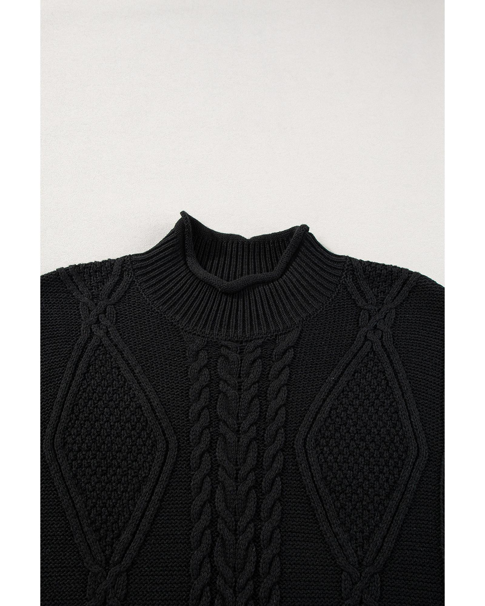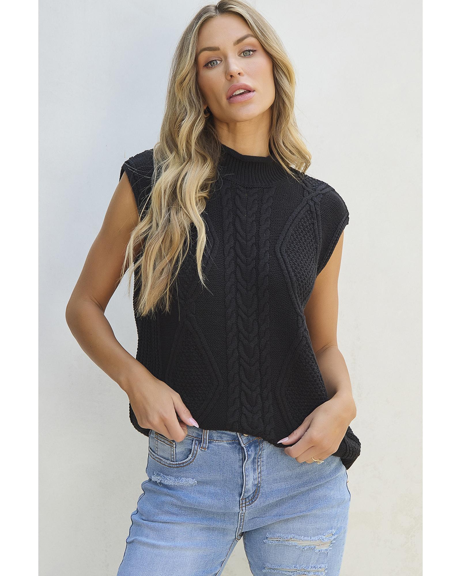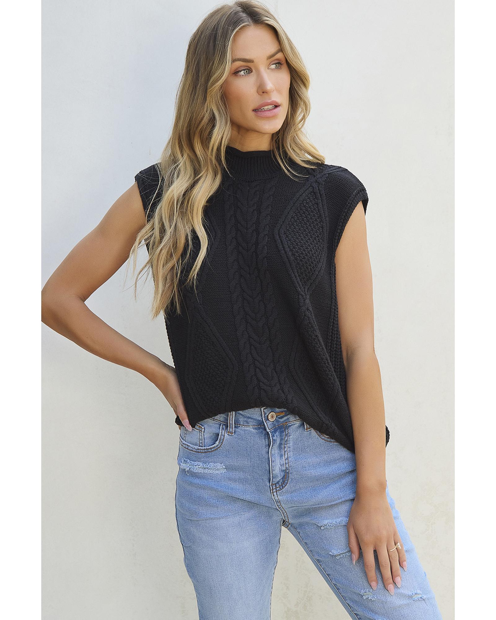 Black Solid Color Cable Knit High Neck Sweater Vest – XL