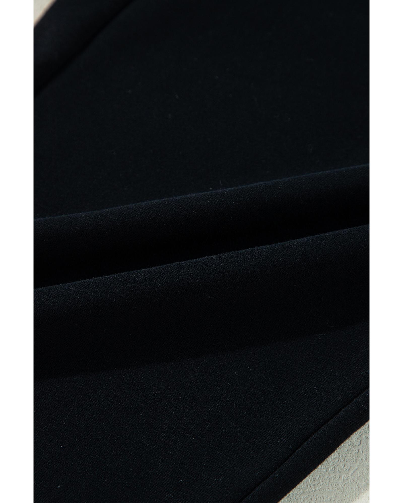 Black Solid Color Fleece Lined Drawstring Waist Casual Pants – XL