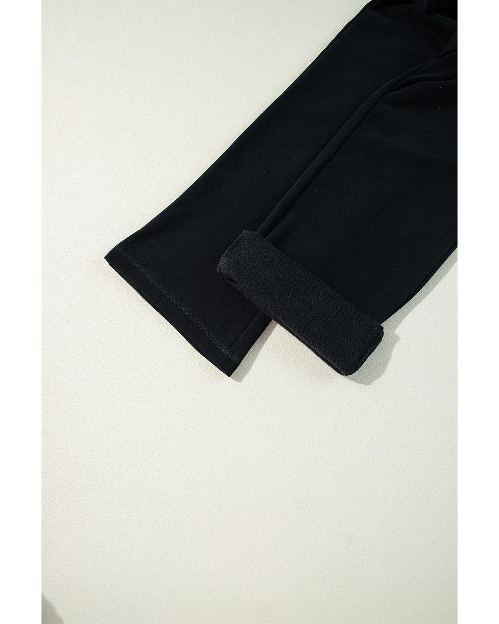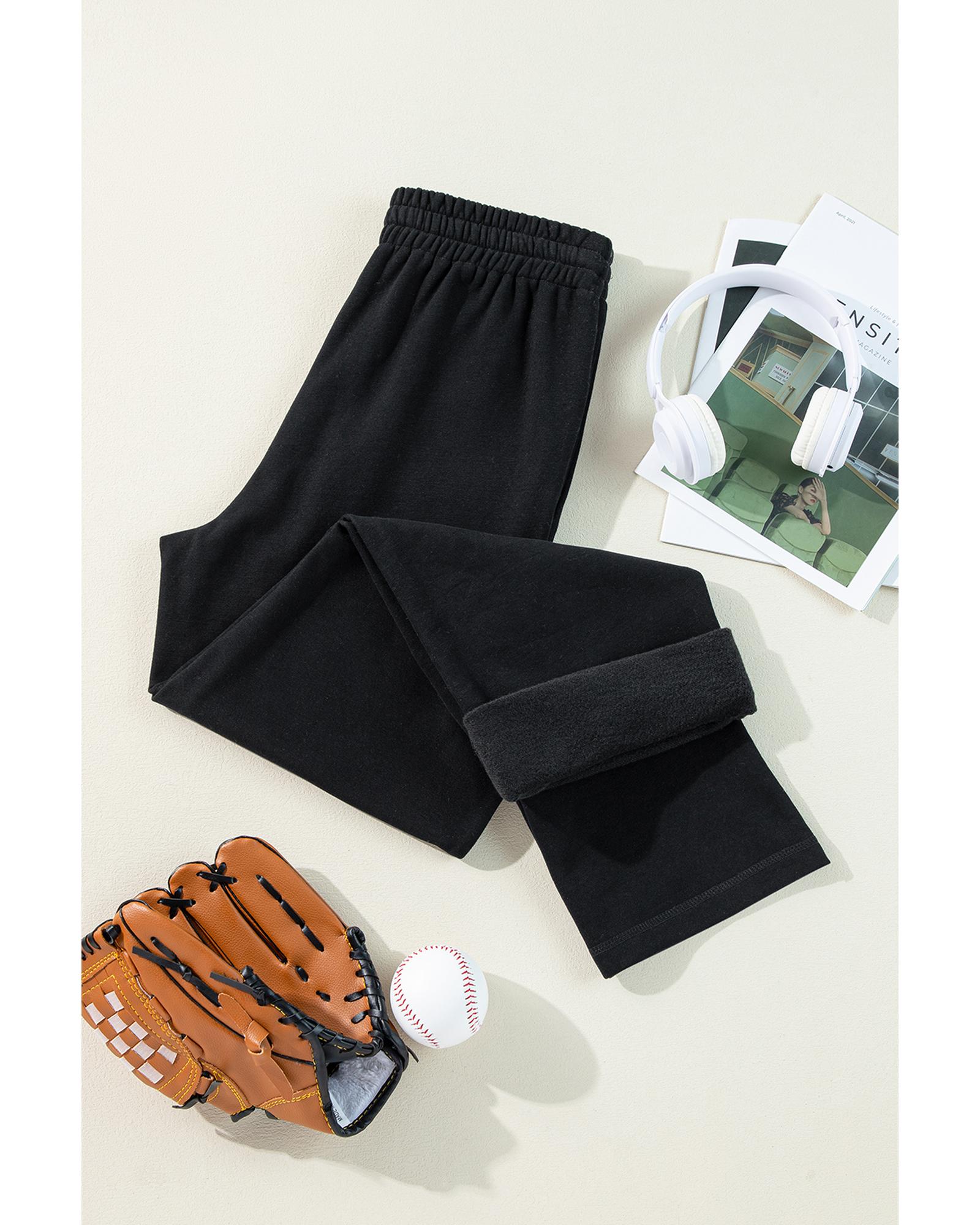 Black Solid Color Fleece Lined Drawstring Waist Casual Pants - S