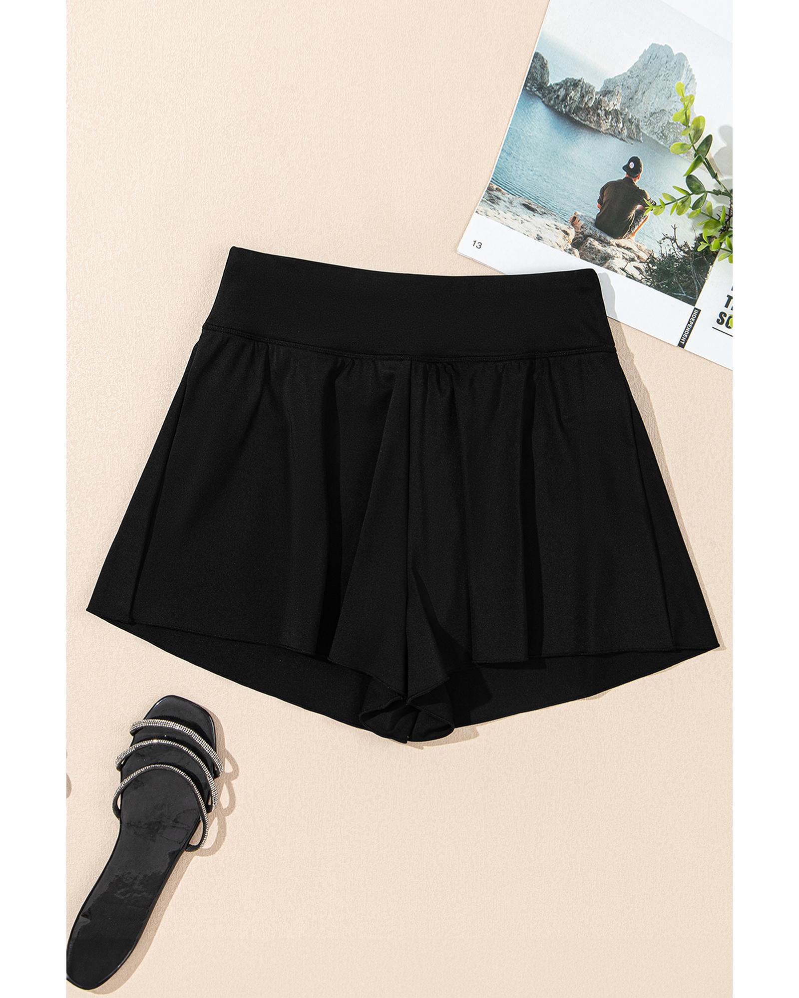 Black Solid Color High Waist Wide Leg Swim Bottom – 2XL