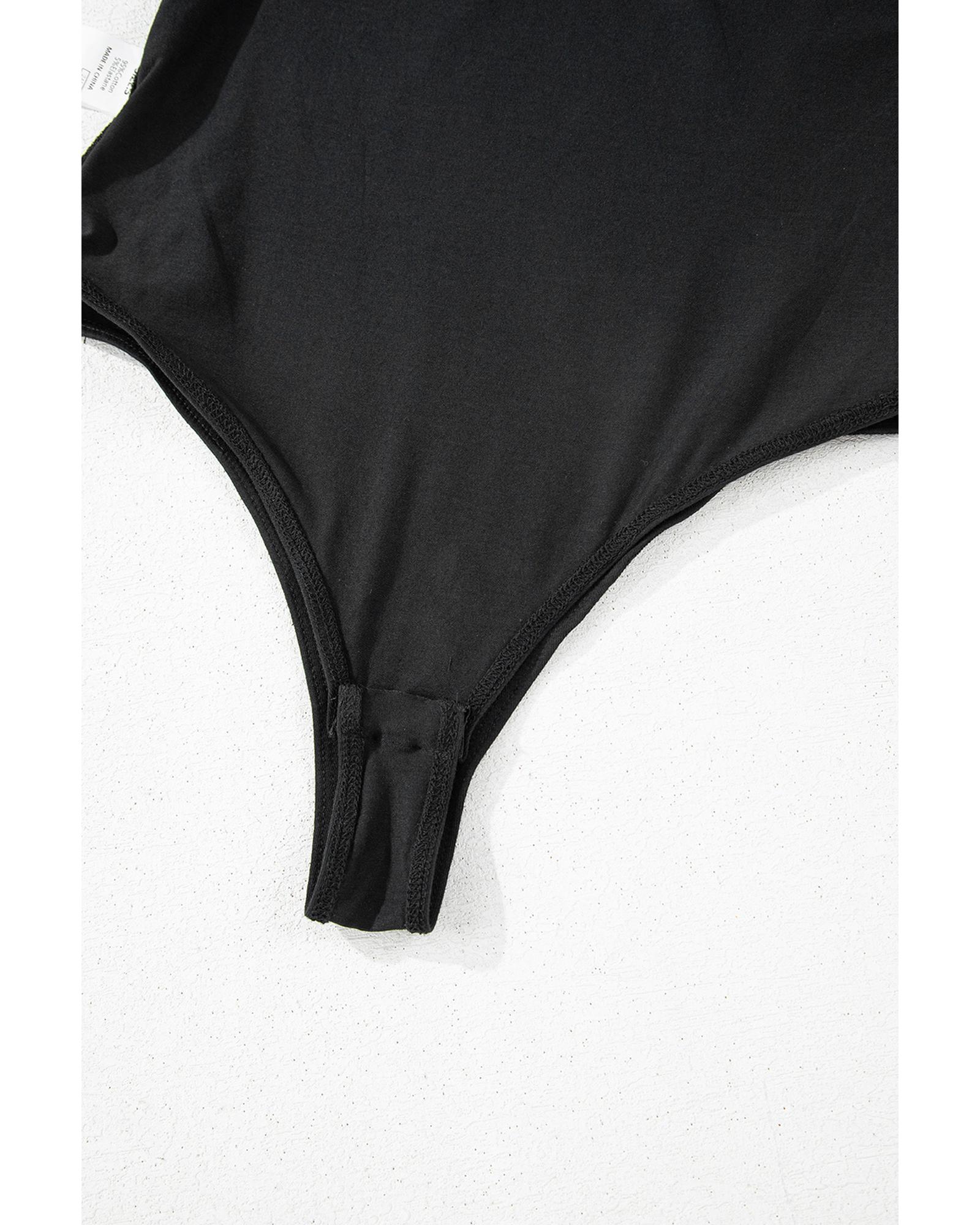 Black Solid Color Pleated One Shoulder Bodysuit – L