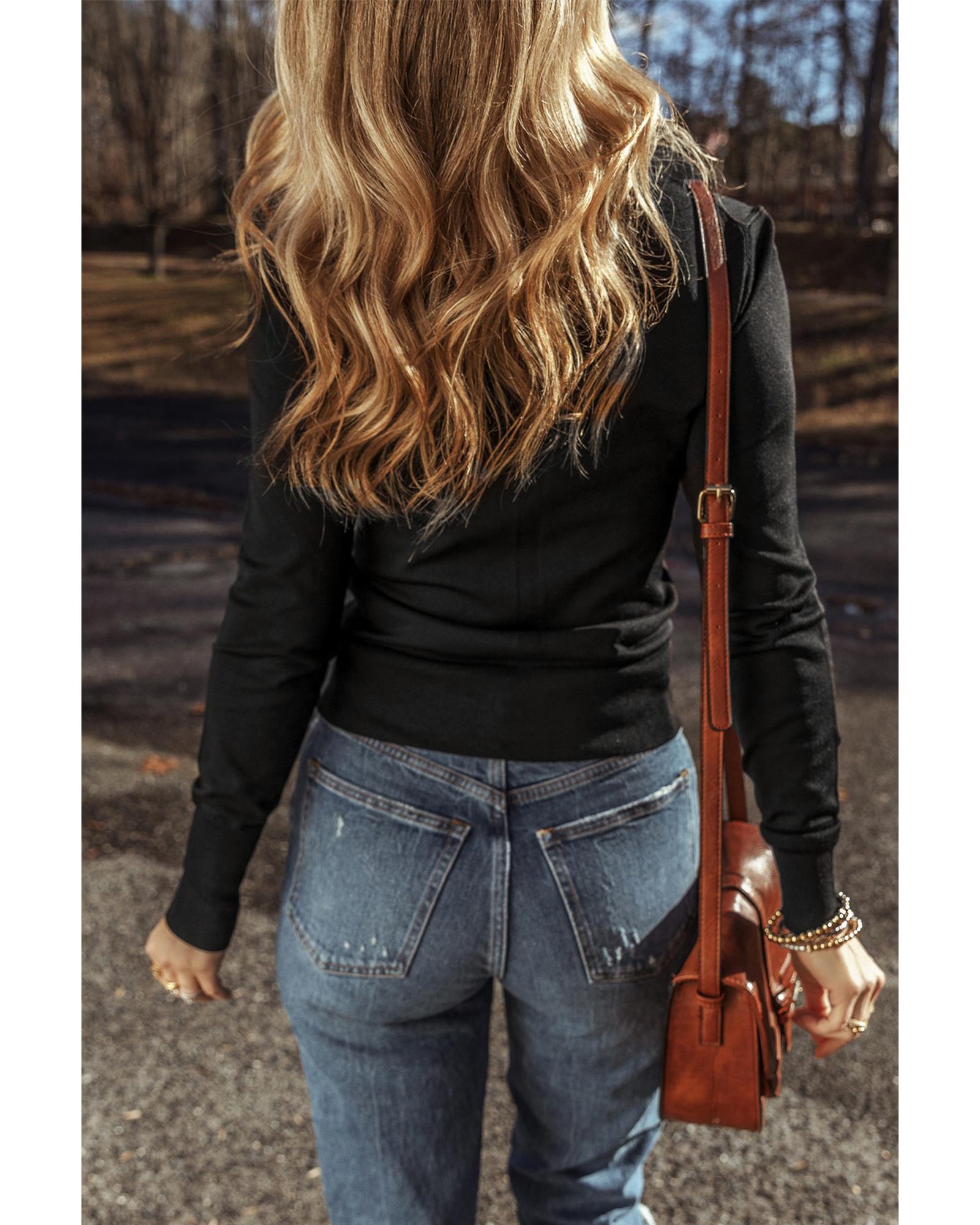 Black Solid Color Slim Fit Lightweight Crew Neck Sweater – S