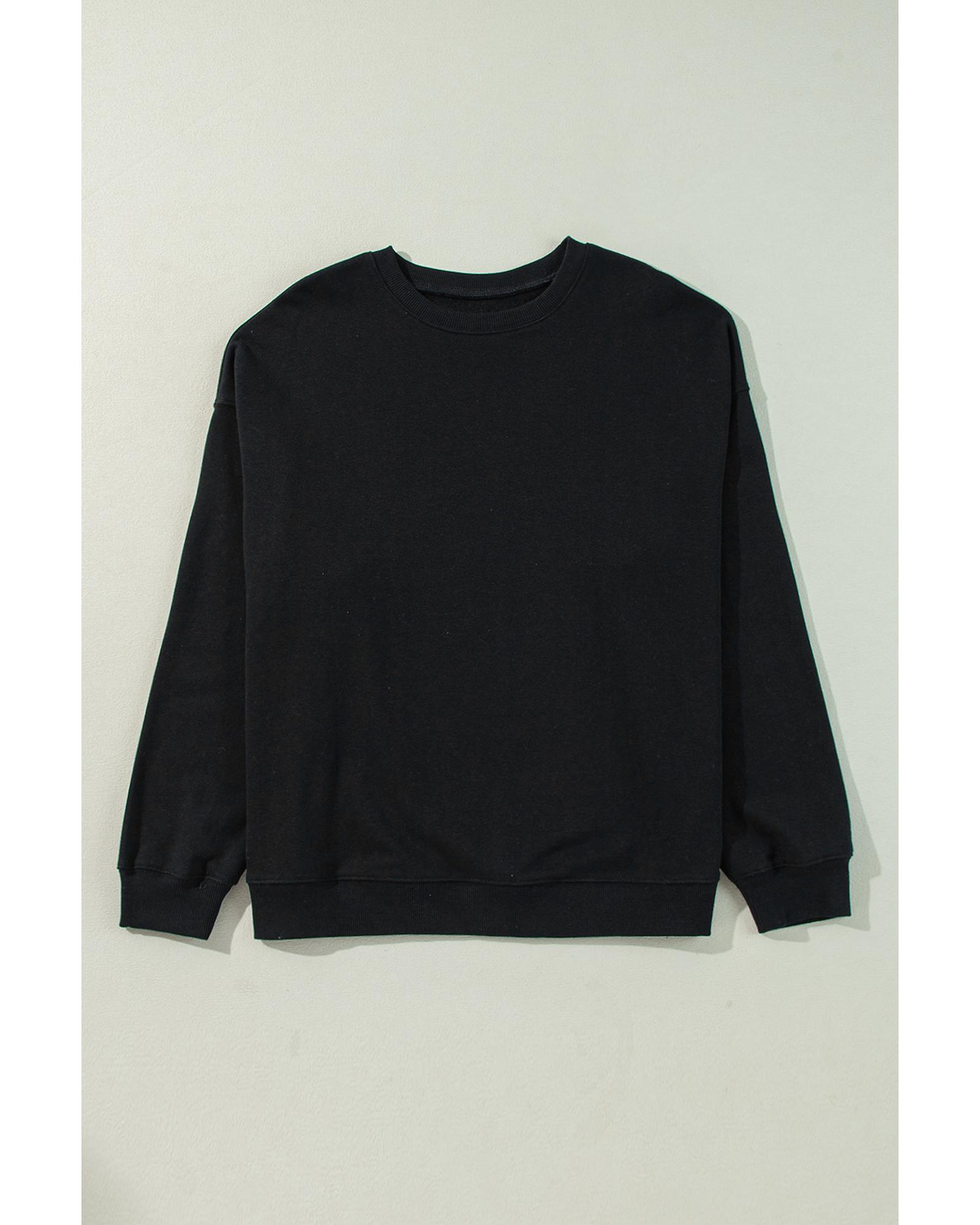 Black Solid Crew Neck Drop Shoulder Plus Size Sweatshirt - 1X