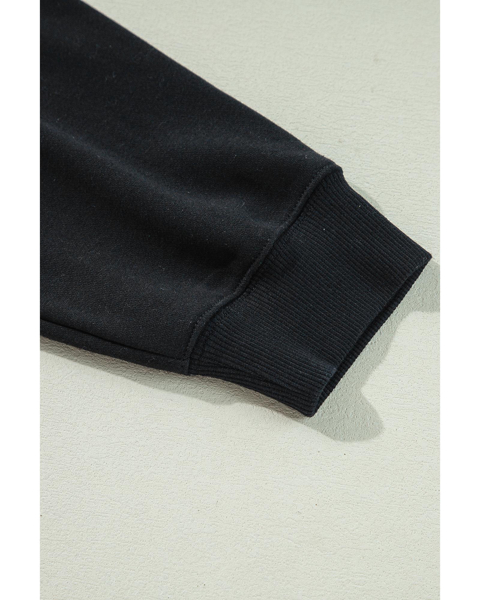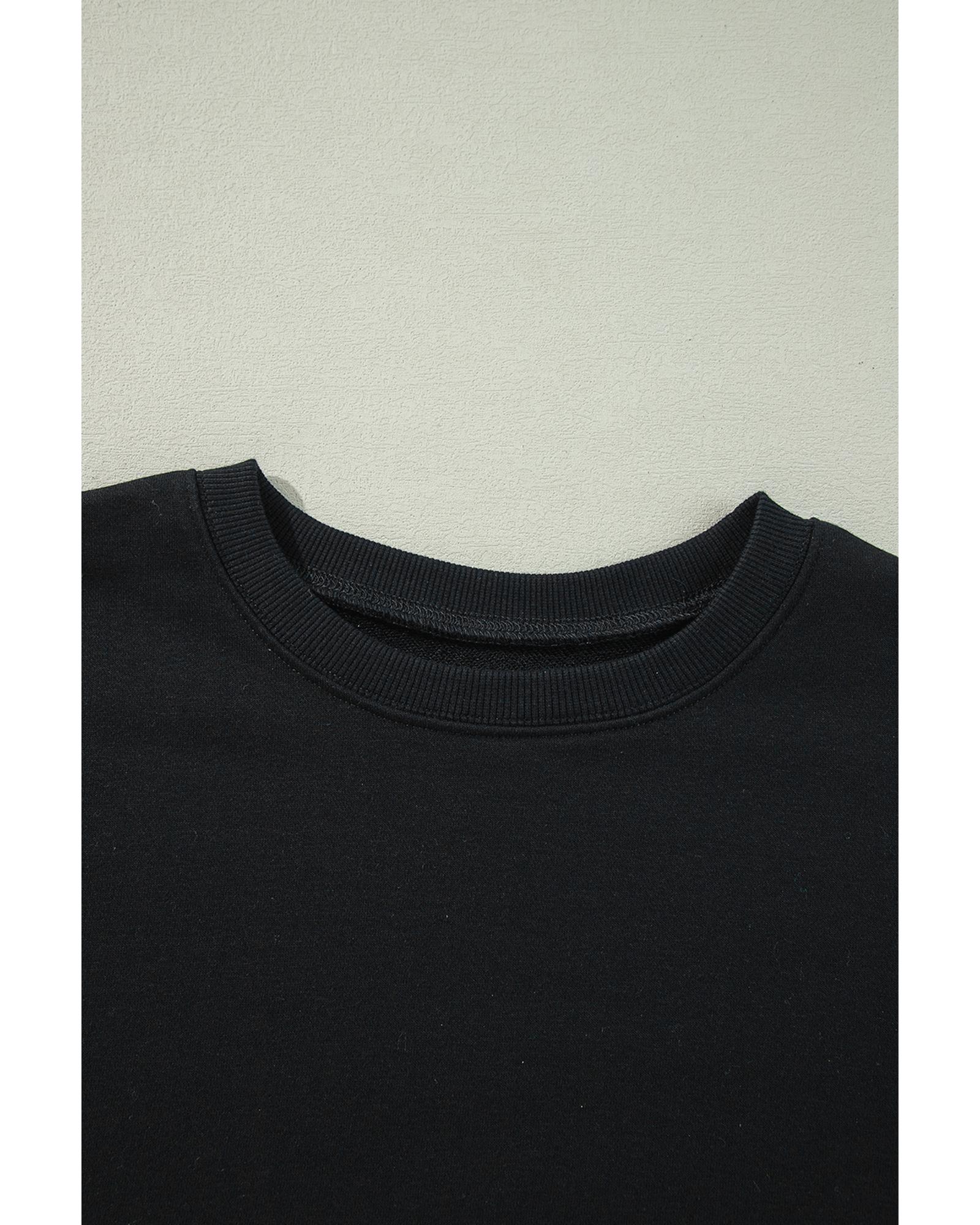 Black Solid Crew Neck Drop Shoulder Plus Size Sweatshirt – 3X