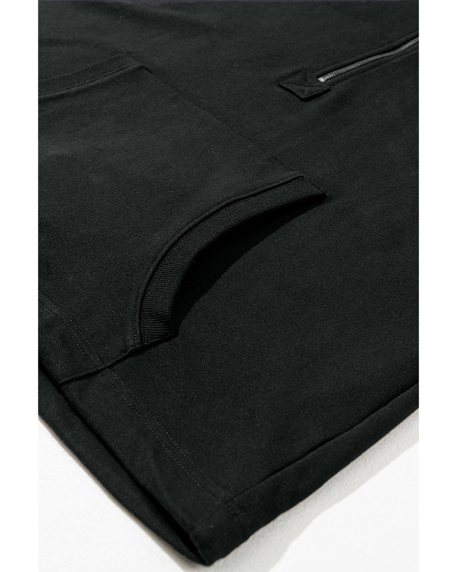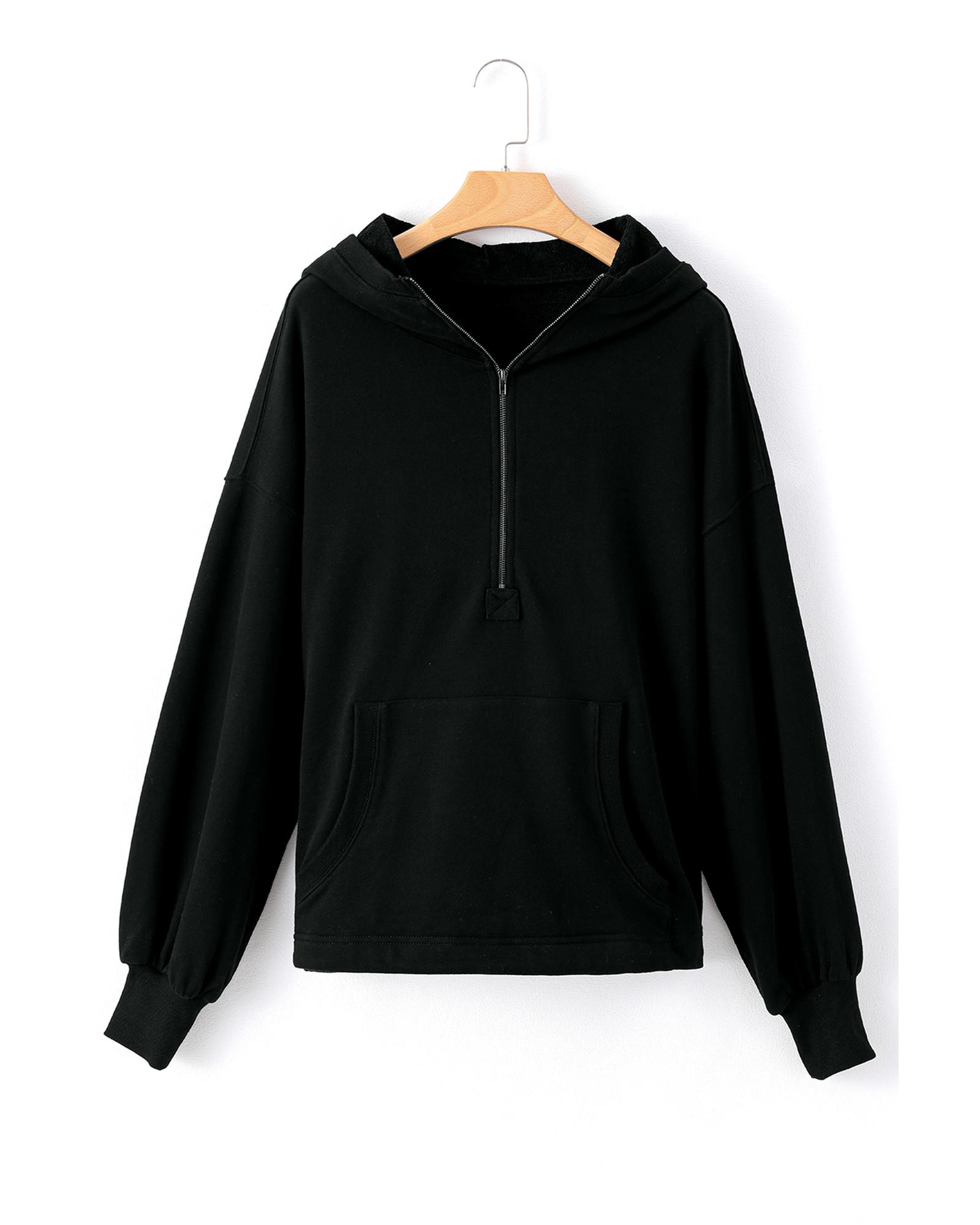 Black Solid Kangaroo Pocket Half Zipper Oversized Hoodie – L