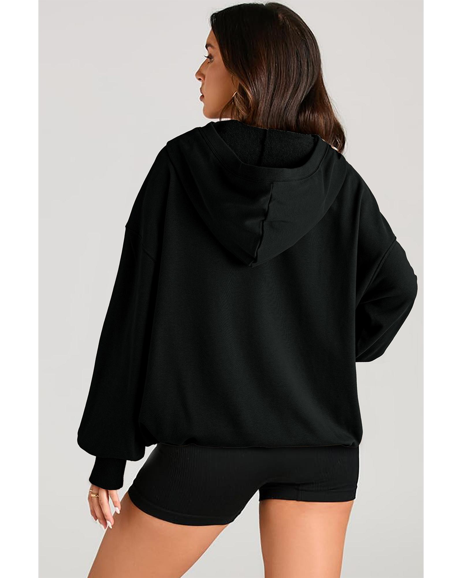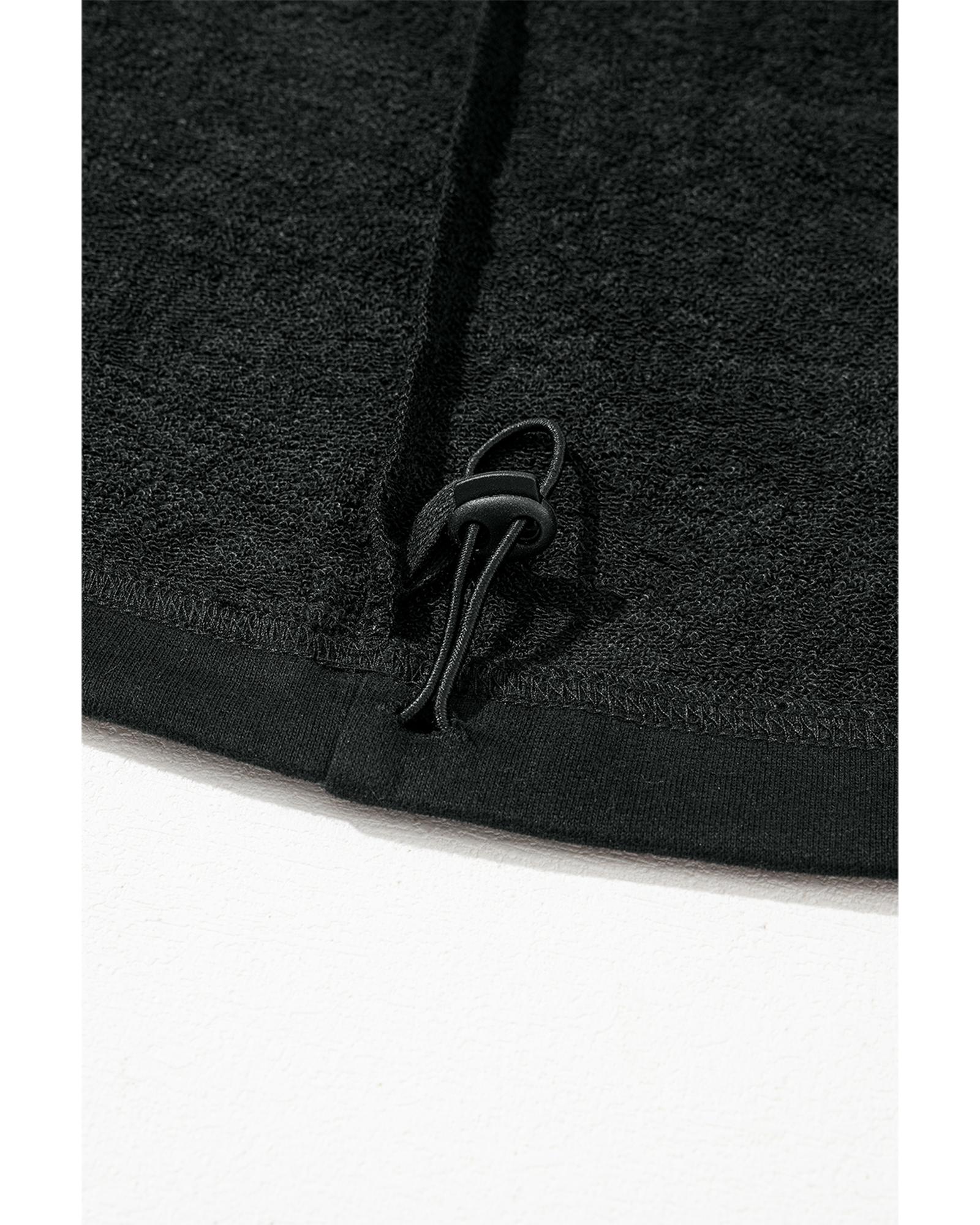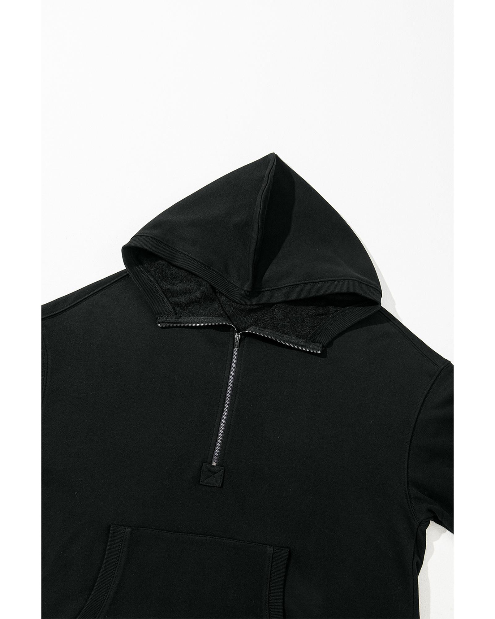Black Solid Kangaroo Pocket Half Zipper Oversized Hoodie – M