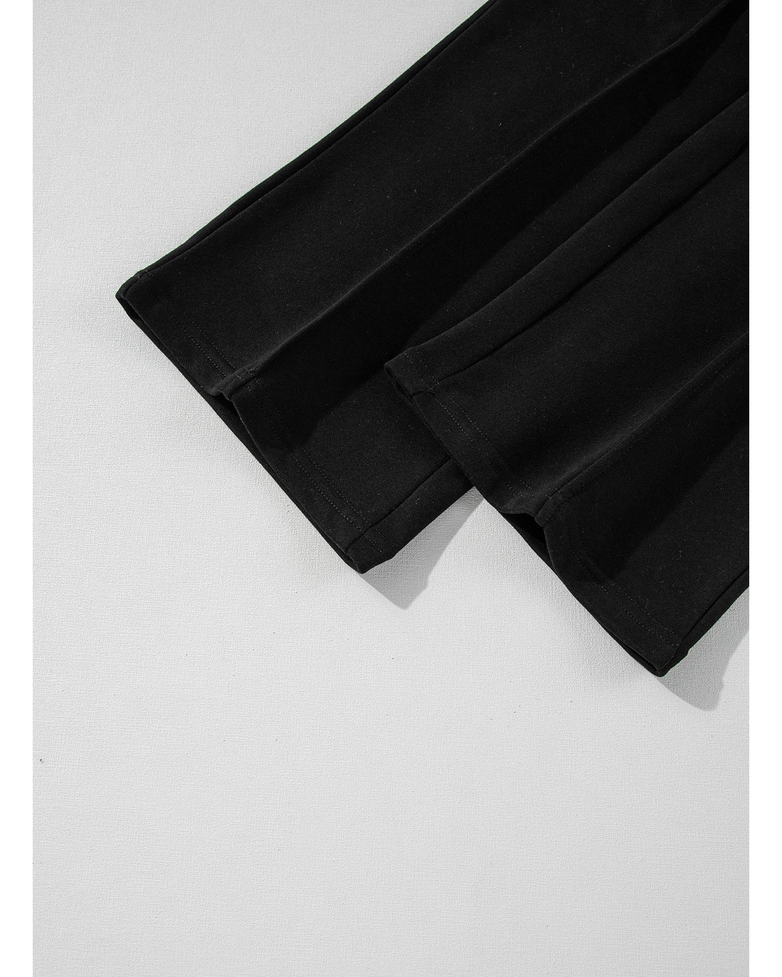 Black Solid Seamed Zipper Jacket and Drawstring Waist Pants Set – L