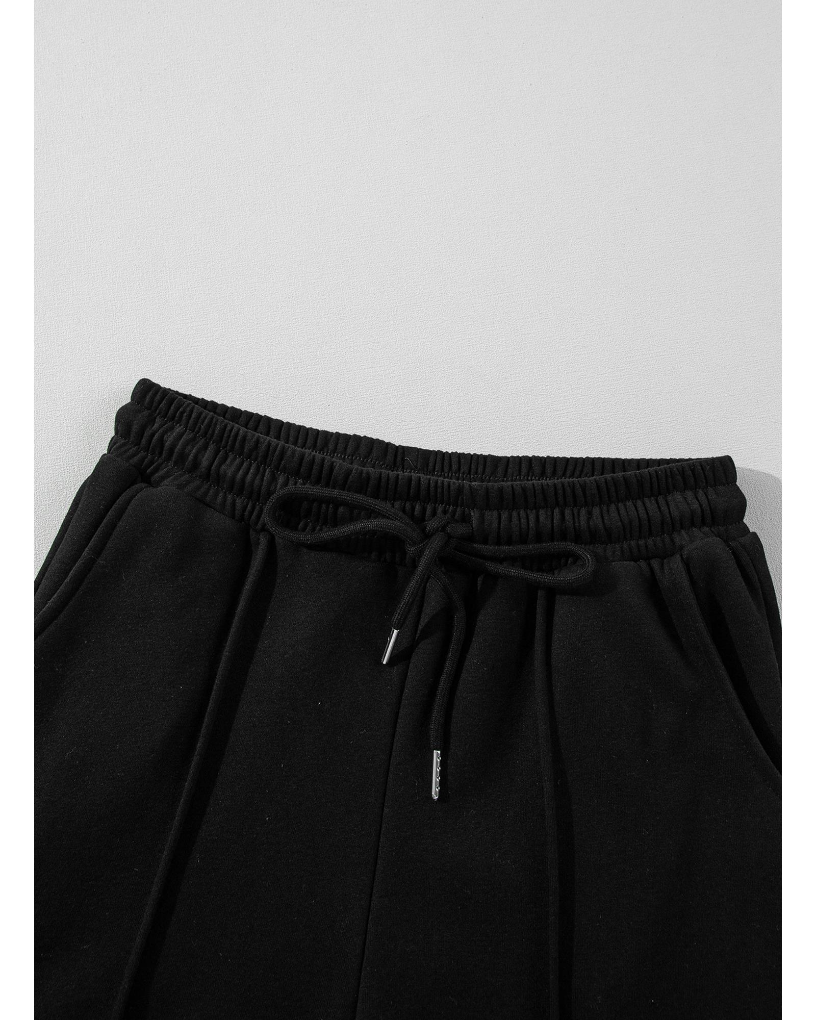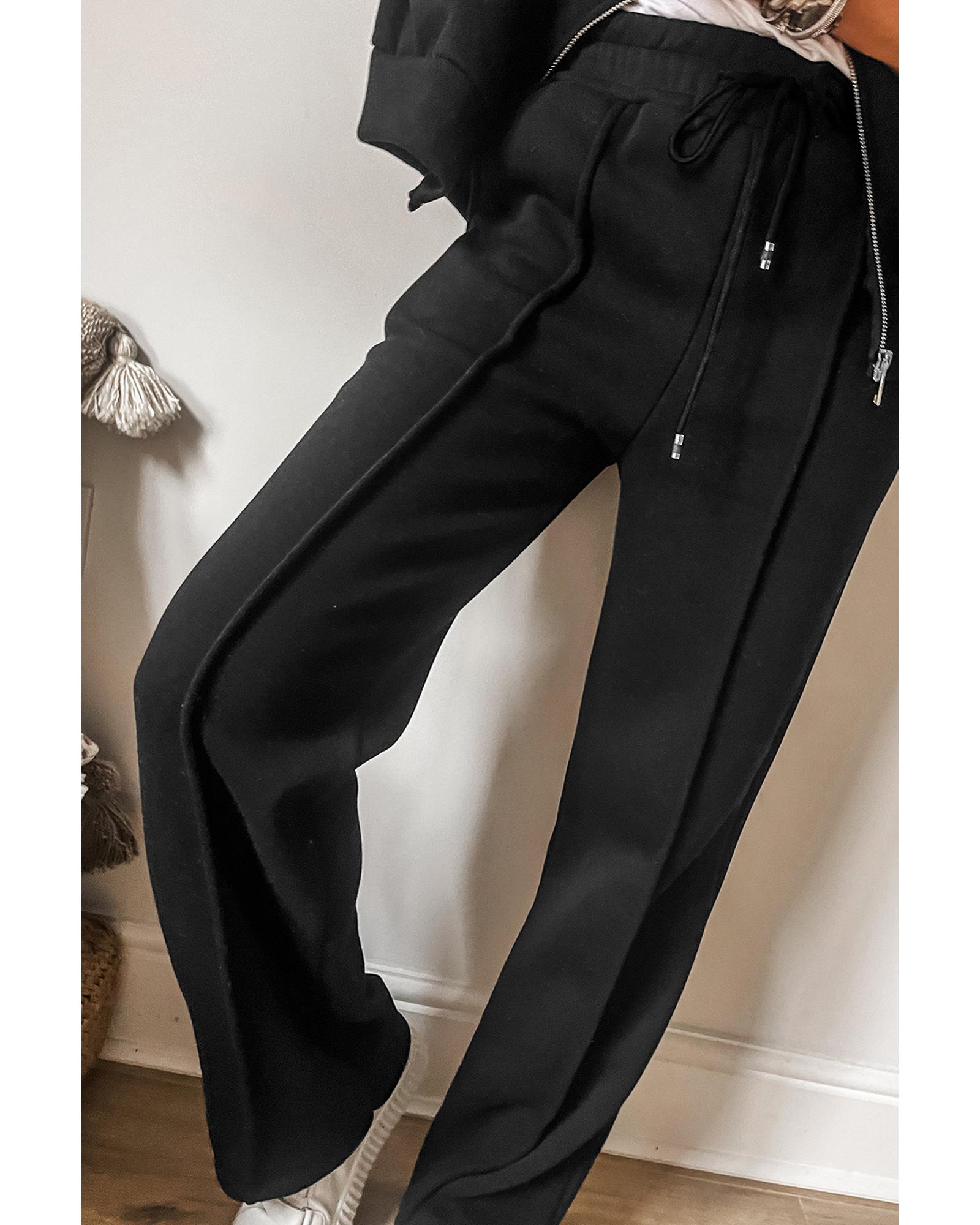 - Black solid seamed zipper jacket and drawstring waist pants set
