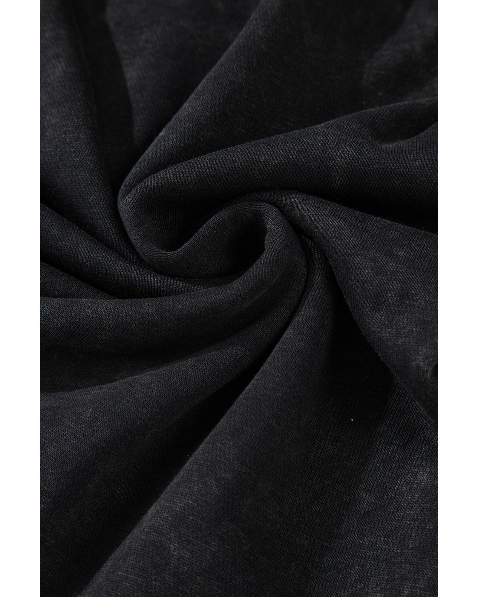Black Solid Waffle Knit Patchwork Raglan Sleeve Sweatshirt – M
