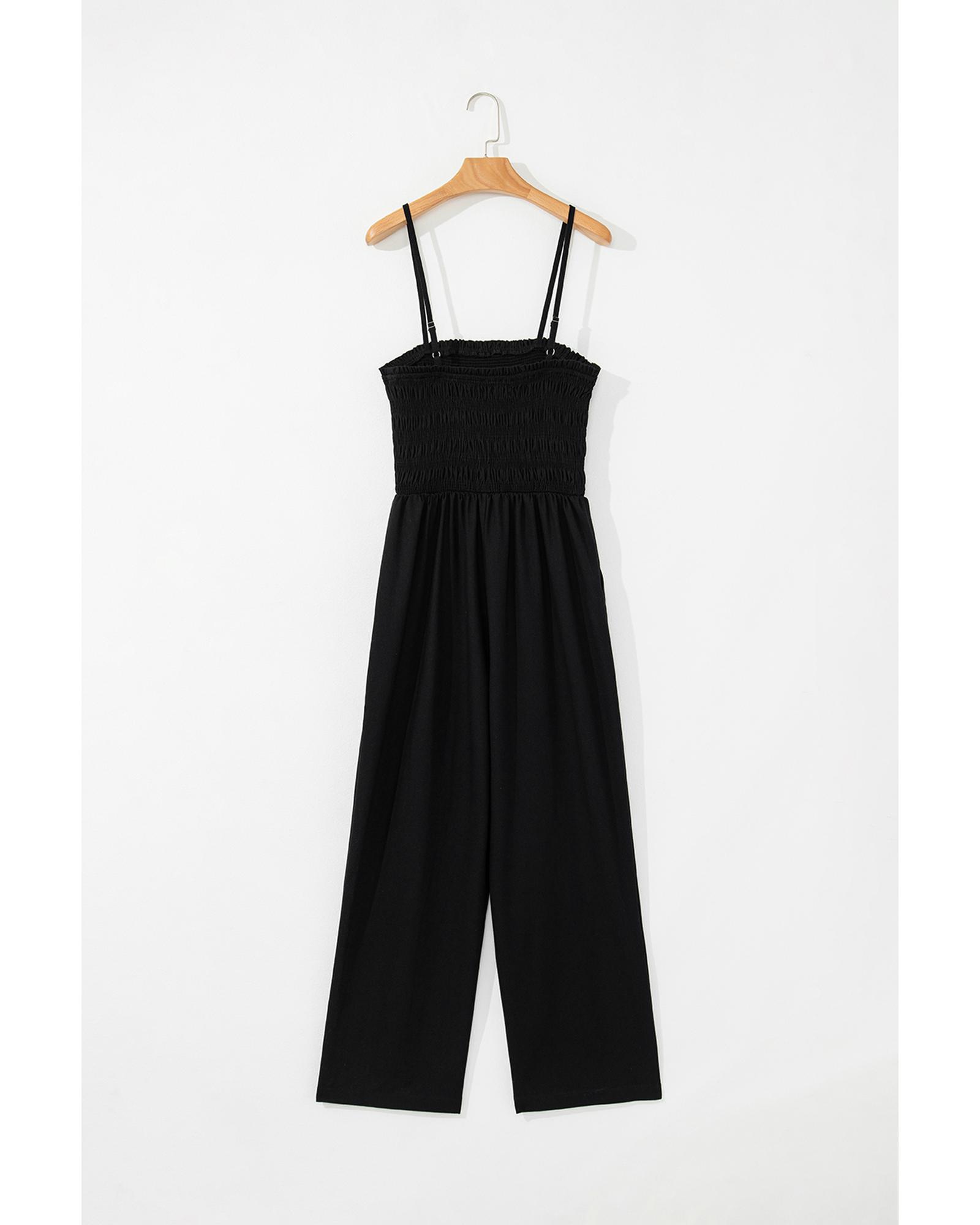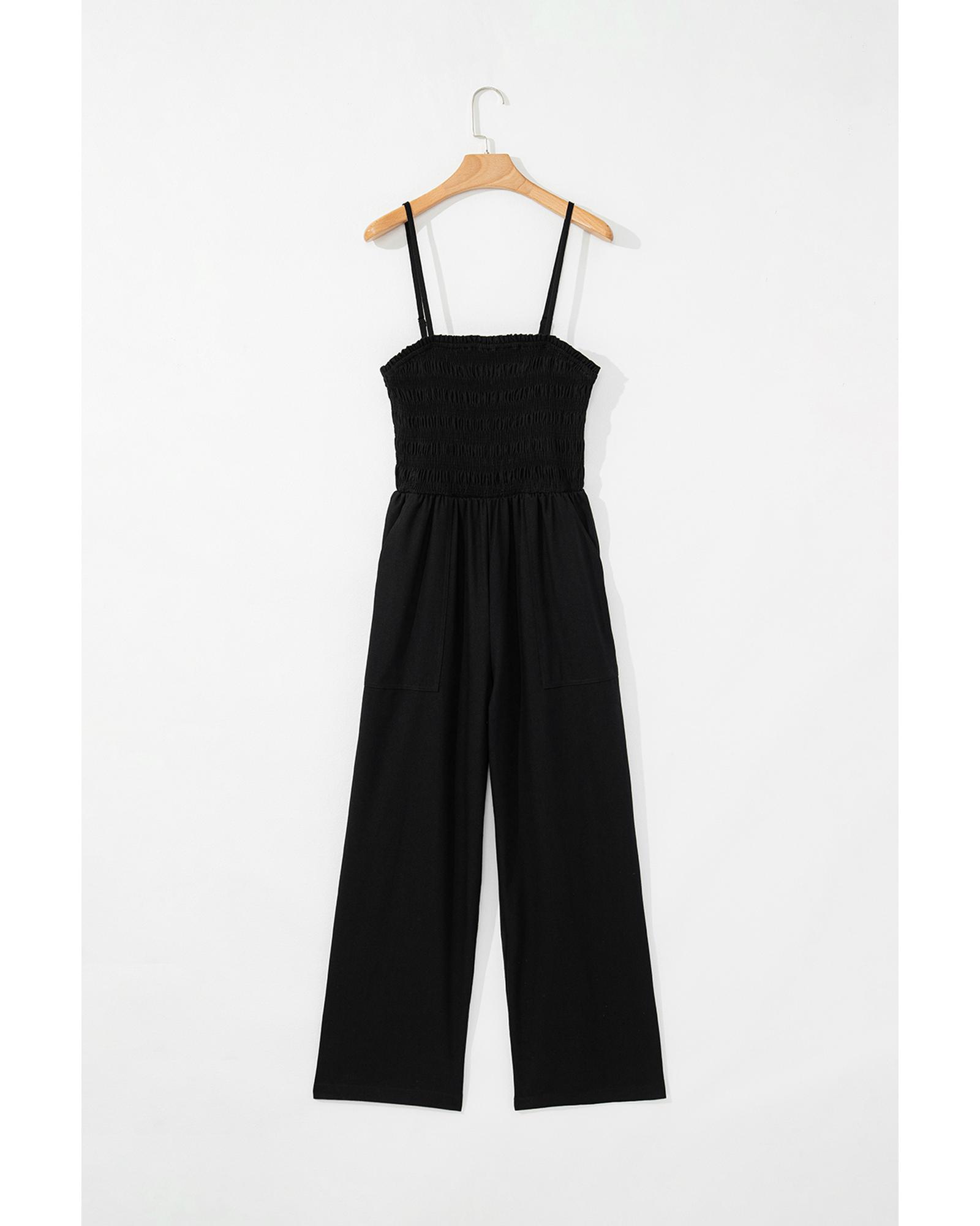 Black Spaghetti Straps Shirred Bodice Pocketed Wide Leg Jumpsuit – M