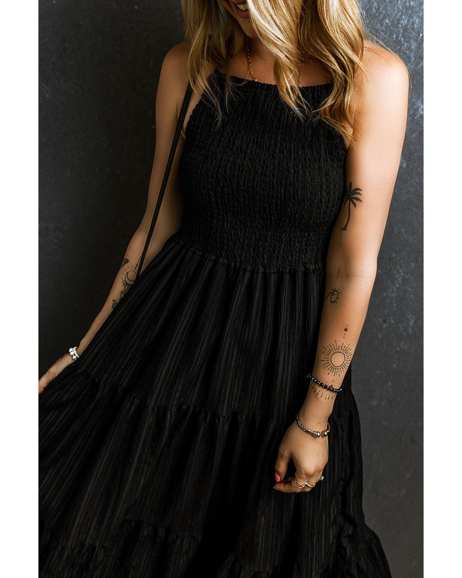 Black Spaghetti Straps Smocked Pleated Tiered Maxi Dress – M