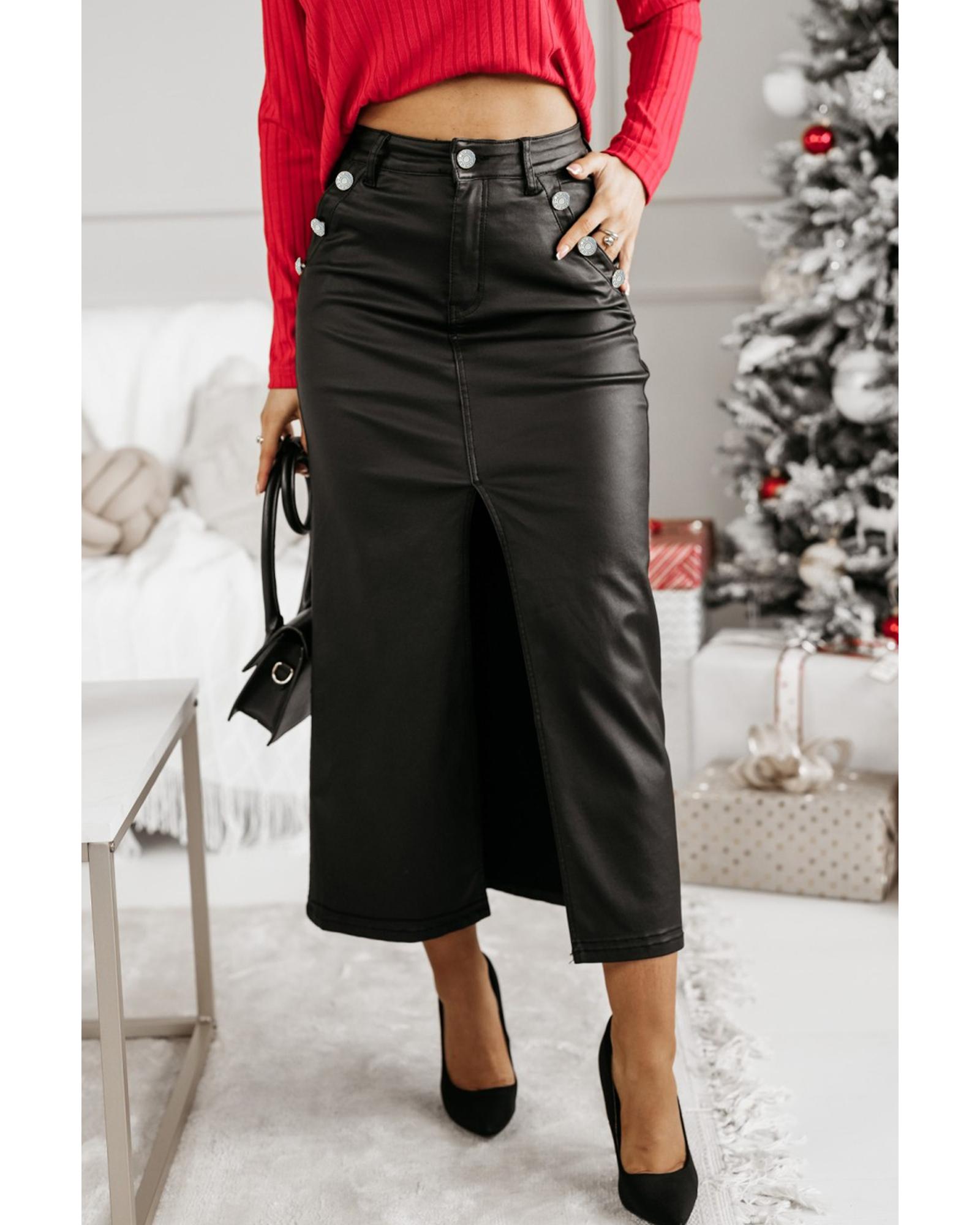 Black Split Front High Waist Slim Fit Midi Skirt – S