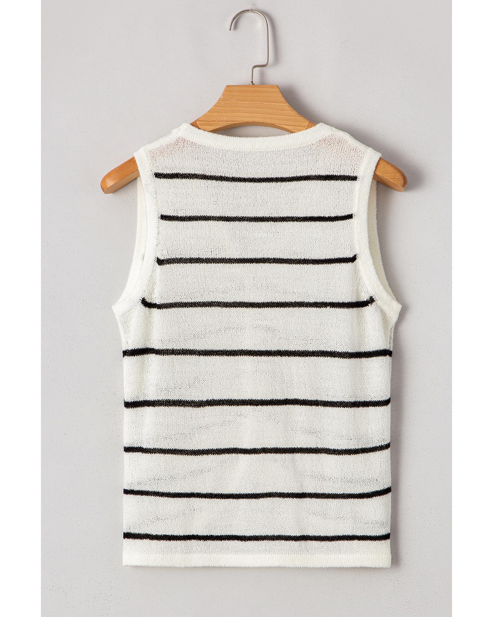 - Black Stripe Buttoned V Neck Slim Fit Sweater Vest