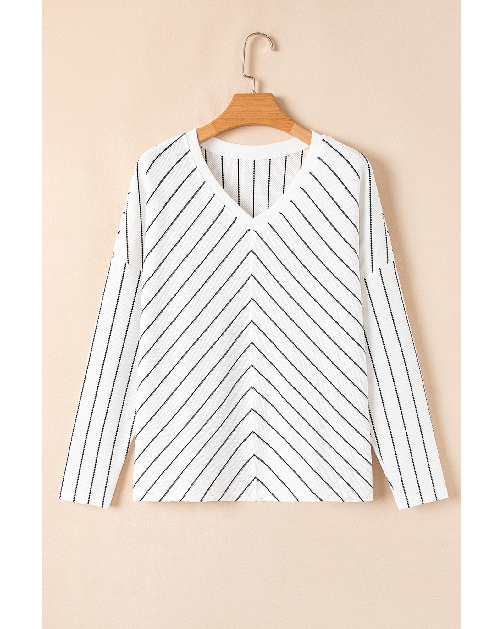 - Black Stripe Chevron Striped V Neck Long Sleeve Casual Top
